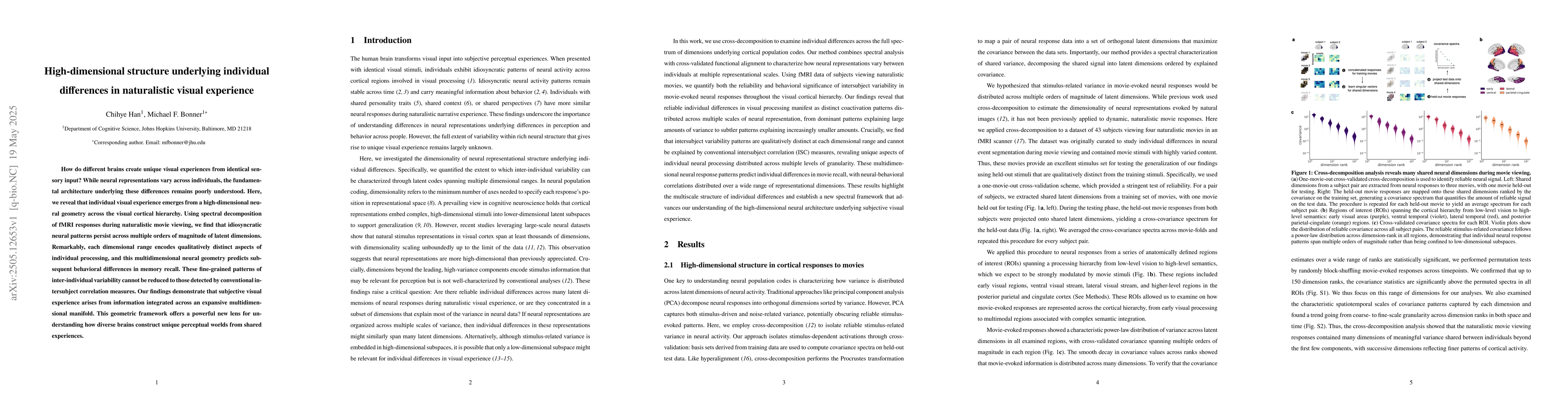 This work distinguishes itself by revealing the high-dimensional, multifaceted nature of individual visual experiences, going beyond conventional intersubject correlation measures.