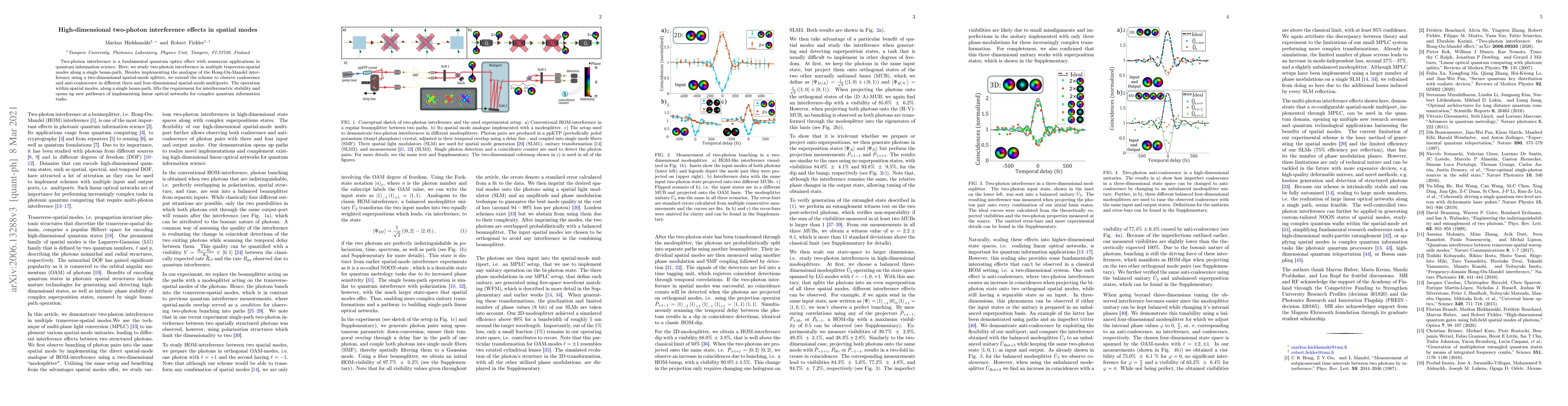 This paper investigates high-dimensional two-photon interference in spatial modes, demonstrating the analogue of Hong-Ou-Mandel interference and observing coalescence and anti-coalescence in multiports, which simplifies the implementation of linear optical networks for quantum information tasks.