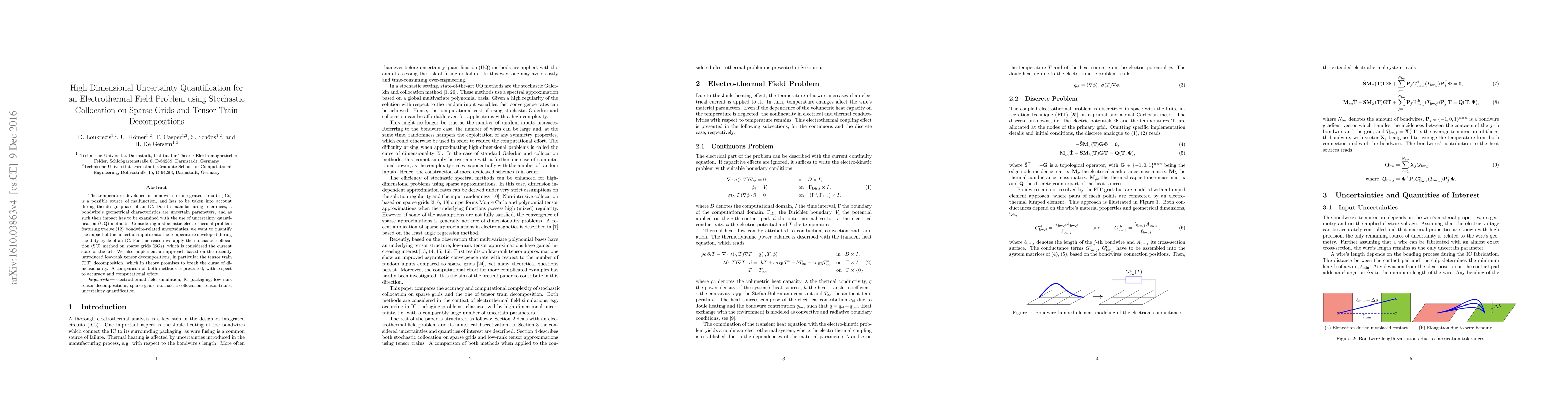 This paper investigates high-dimensional uncertainty quantification for electrothermal fields in bondwires using stochastic collocation on sparse grids and tensor train decompositions to efficiently handle the curse of dimensionality, aiming to improve the reliability of integrated circuit designs.