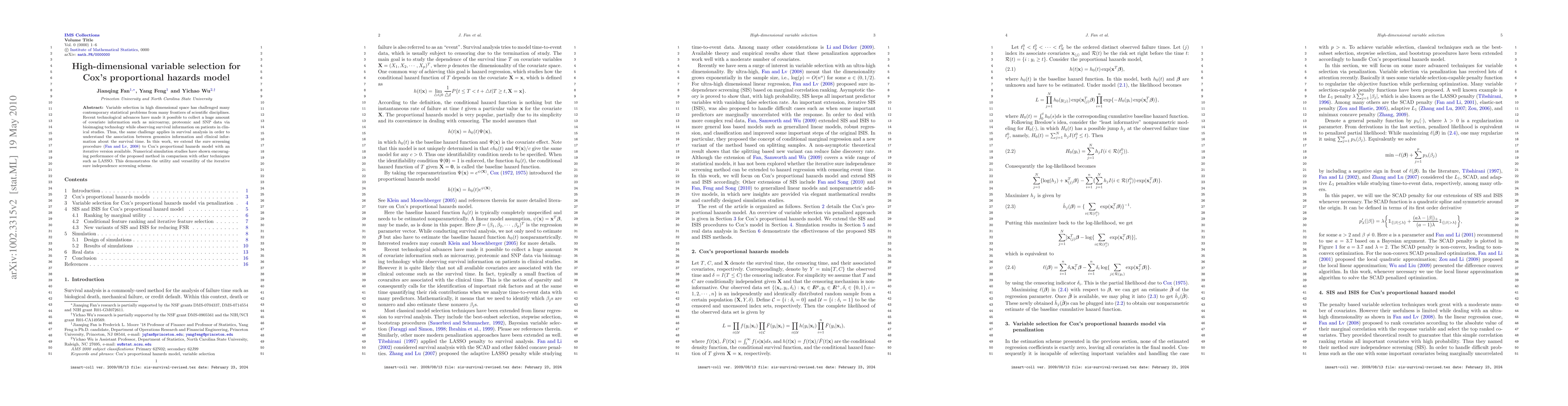 This paper proposes an iterative version of the sure screening procedure to select variables in high-dimensional Cox's proportional hazards models, demonstrating its effectiveness through numerical simulations compared to LASSO. The method shows promising results for linking genomics data with clinical survival information.