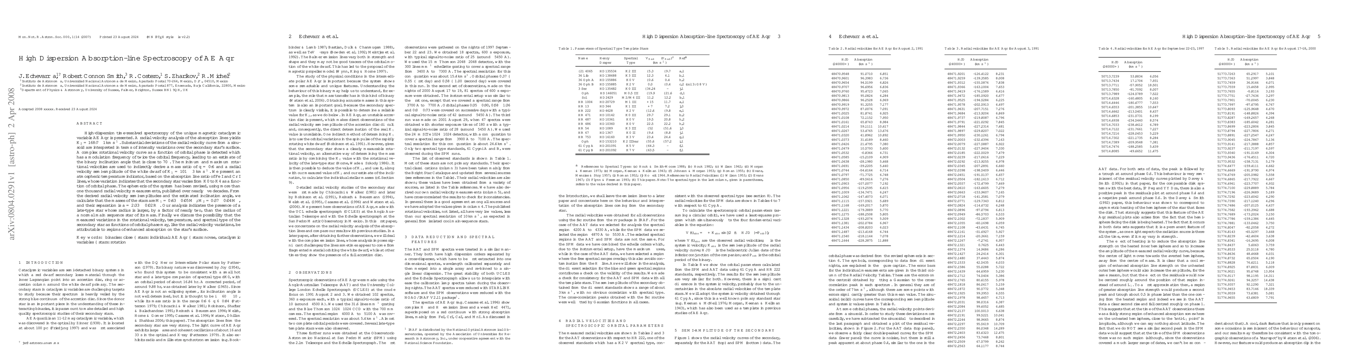 High-dispersion time-resolved spectroscopy of the unique magnetic cataclysmic variable AE Aqr is presented. A radial velocity analysis of the absorption lines yields K_2 = 168.7+/- 1 km/s. Substantial deviations of the radial velocity curve from a sinusoid are interpreted in terms of intensity variations over the secondary star's surface. A complex rotational velocity curve as a function of orbital phase is detected which has a modulation frequency of twice the orbital frequency, leading to an estimate of the binary inclination angle that is close to 70^o. The minimum and maximum rotational velocities are used to indirectly derive a mass ratio of q= 0.6 and a radial velocity semi-amplitude of the white dwarf of K_1 = 101+/-3 km/s. We present an atmospheric temperature indicator, based on the absorption line ratio of Fe I and Cr I lines, whose variation indicates that the secondary star varies from K0 to K4 as a function of orbital phase. The ephemeris of the system has been revised, using more than one thousand radial velocity measurements, published over nearly five decades. From the derived radial velocity semi-amplitudes and the estimated inclination angle, we calculate that the masses of the stars are M_1 = 0.63+/-0.05M_sun; M_2 = 0.37+/-0.04 M_sun, and their separation is a = 2.33+/-0.02R_sun. Our analysis indicates the presence of a late-type star whose radius is larger, by a factor of nearly two, than the radius of a normal main sequence star of its mass. Finally we discuss the possibility that the measured variations in the rotational velocity, temperature, and spectral type of the secondary star as functions of orbital phase may, like the radial velocity variations, be attributable to regions of enhanced absorption on the star's surface.