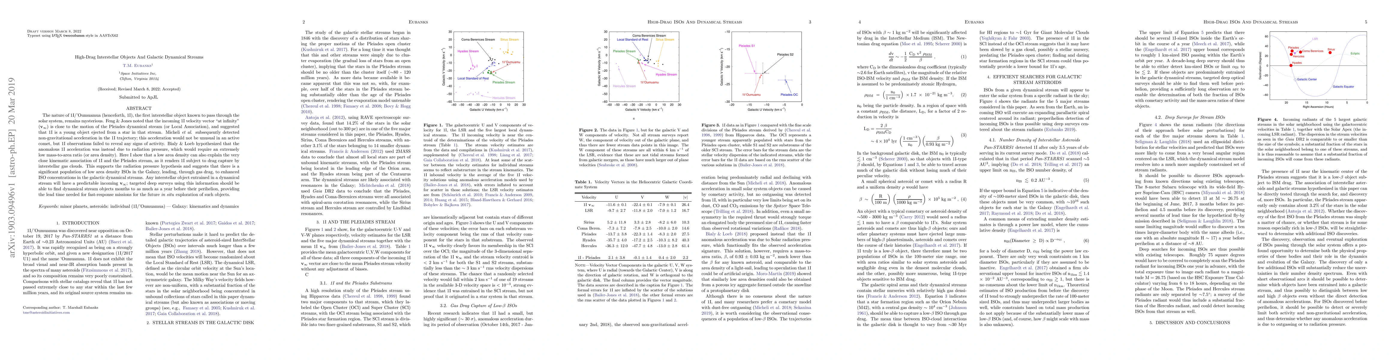 This paper explores the nature of the first known interstellar object, 1I/'Oumuamua, suggesting its low area density could explain its unusual acceleration and close association with the Pleiades dynamical stream. It posits that many such high-drag objects exist, leading to enhanced concentrations in galactic dynamical streams, and proposes targeted surveys to identify these objects in advance for future exploration missions.