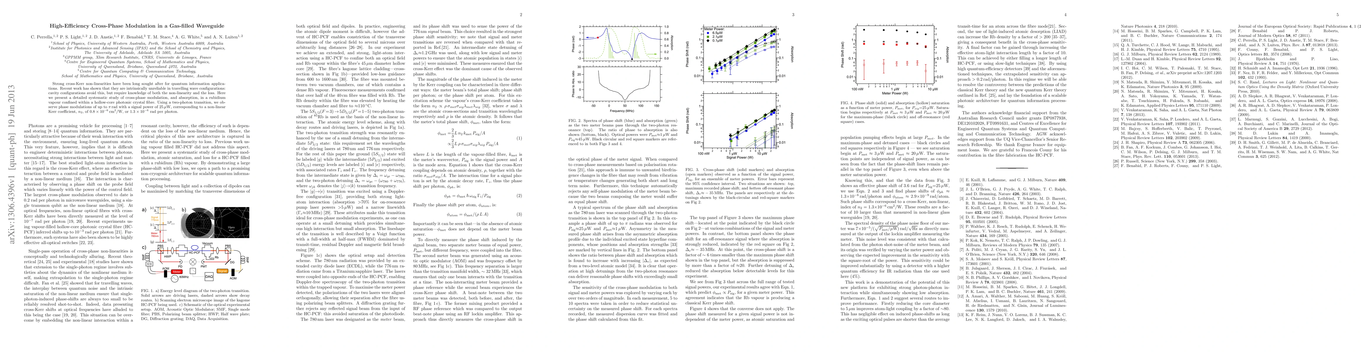 This paper investigates high-efficiency cross-phase modulation in a gas-filled waveguide using rubidium vapour in a photonic crystal fibre, achieving phase modulations of up to $\pi$ rad with low signal power, demonstrating a non-linear Kerr coefficient of $1.3 \times 10^{-6}$ rad per photon.