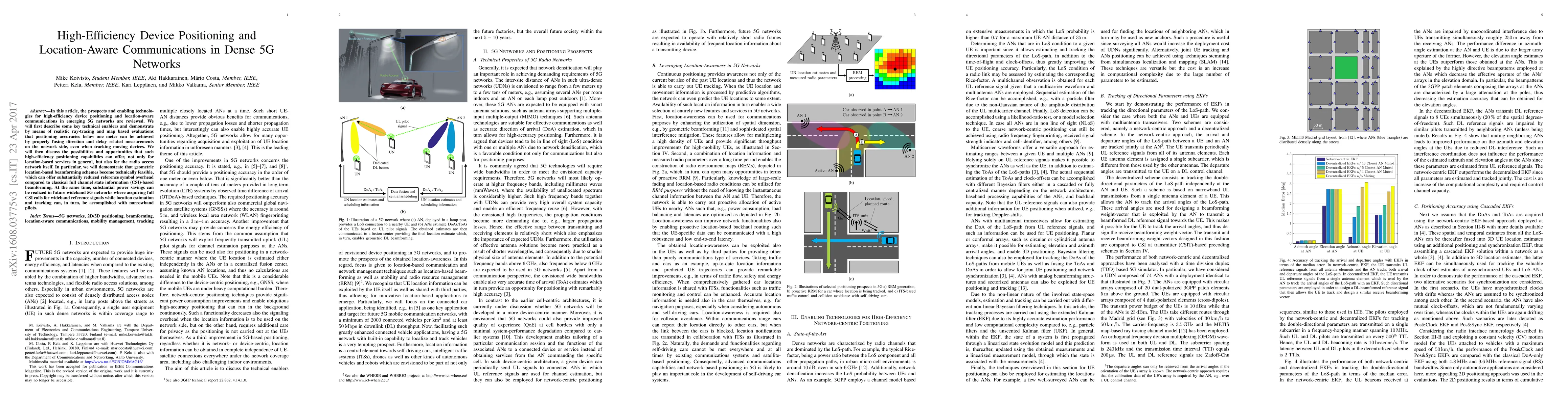 This paper reviews high-efficiency device positioning and location-aware communications in dense 5G networks, demonstrating sub-meter accuracy through network-side fusion of direction and delay measurements. It also explores how such positioning can enable geometric location-based beamforming, reducing overhead and power consumption compared to traditional full channel state information-based methods.