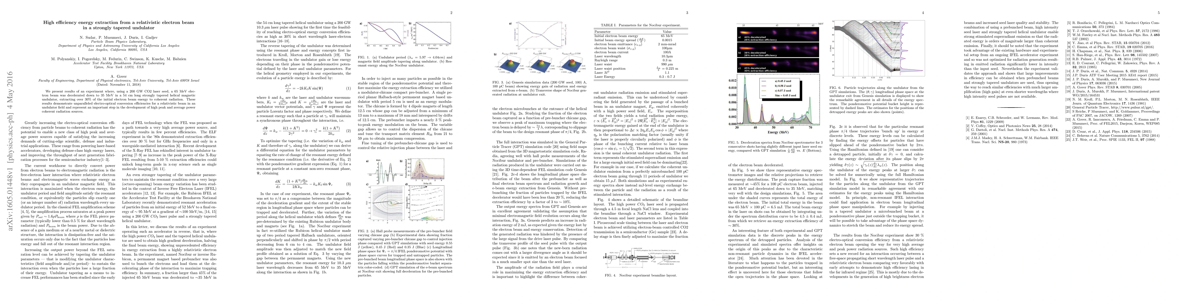 This research demonstrates high efficiency energy extraction from a relativistic electron beam in a strongly tapered undulator, achieving over 30% conversion of initial beam energy to coherent radiation using a 200 GW CO2 laser seed, marking significant progress in developing high power coherent radiation sources.