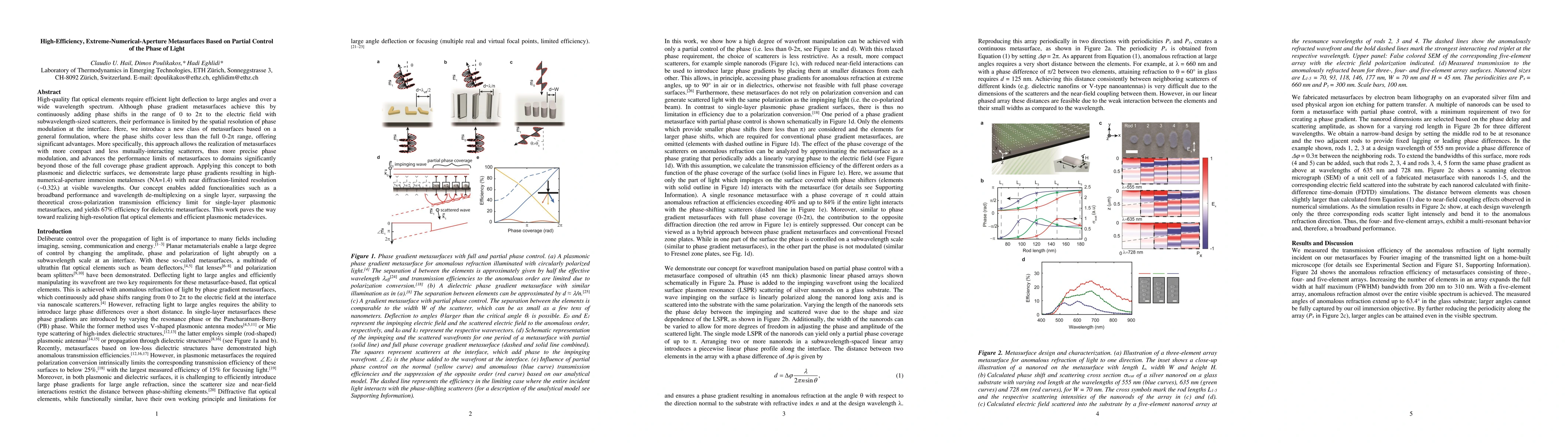 This paper introduces a novel class of high-efficiency metasurfaces that achieve large light deflection angles and wide spectral performance by controlling phase shifts to less than the full 0-2π range. These metasurfaces demonstrate advanced performance, including high-numerical-aperture immersion metalenses and broadband functionalities, surpassing traditional phase gradient metasurfaces.