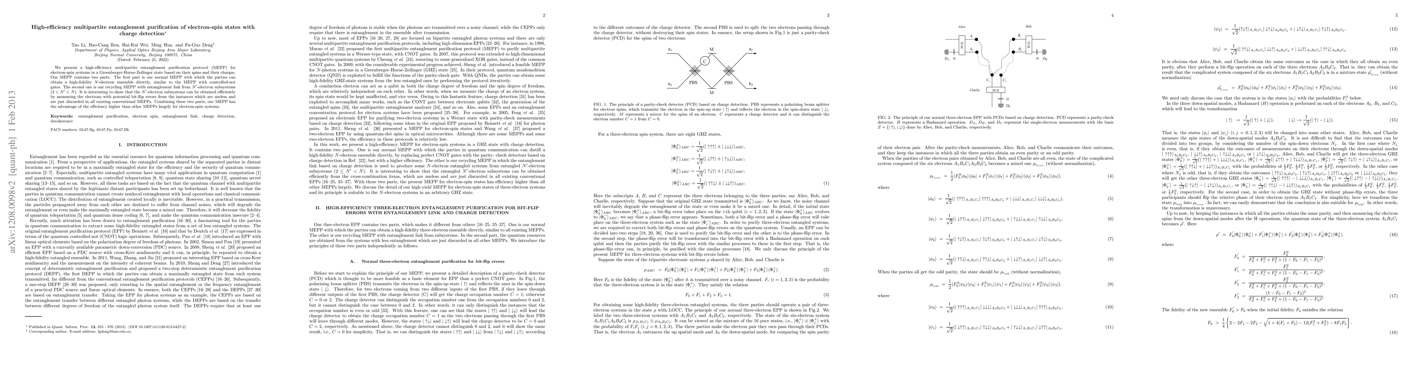 This paper introduces a high-efficiency multipartite entanglement purification protocol (MEPP) for electron-spin systems, utilizing both spin and charge information. The protocol combines a standard MEPP with a recycling MEPP, enabling efficient reuse of previously discarded electron instances, thus significantly enhancing overall efficiency.