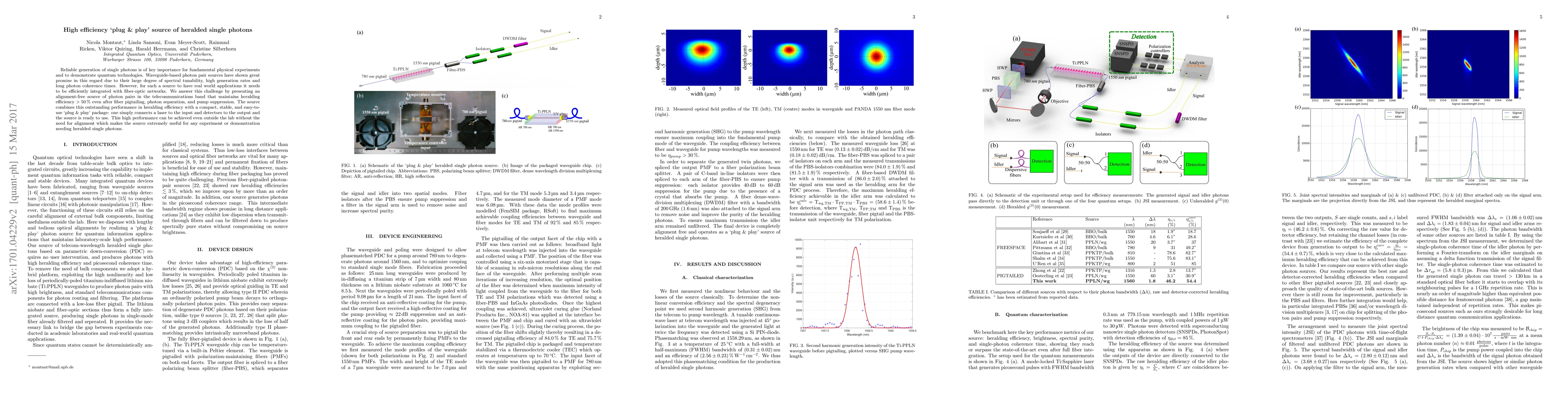 Reliable generation of single photons is of key importance for fundamental physical experiments and to demonstrate quantum technologies. Waveguide-based photon pair sources have shown great promise in this regard due to their large degree of spectral tunability, high generation rates and long photon coherence times. However, for such a source to have real world applications it needs to be efficiently integrated with fiber-optic networks. We answer this challenge by presenting an alignment-free source of photon pairs in the telecommunications band that maintains heralding efficiency > 50 % even after fiber pigtailing, photon separation, and pump suppression. The source combines this outstanding performance in heralding efficiency and brightness with a compact, stable, and easy-to-use 'plug & play' package: one simply connects a laser to the input and detectors to the output and the source is ready to use. This high performance can be achieved even outside the lab without the need for alignment which makes the source extremely useful for any experiment or demonstration needing heralded single photons.