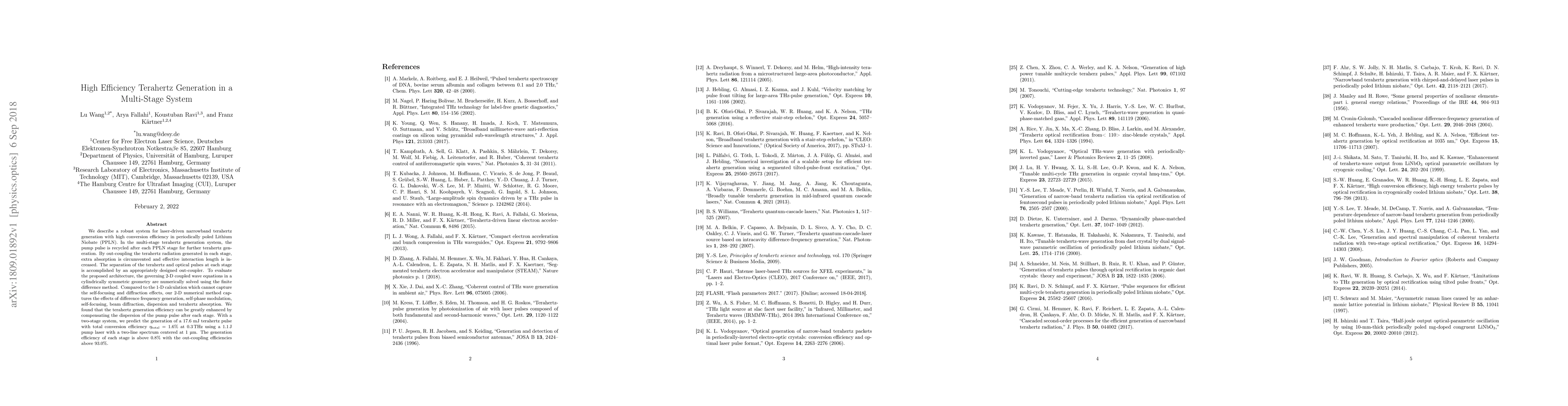 We describe a robust system for laser-driven narrowband terahertz generation with high conversion efficiency in periodically poled Lithium Niobate (PPLN). In the multi-stage terahertz generation system, the pump pulse is recycled after each PPLN stage for further terahertz generation. By out-coupling the terahertz radiation generated in each stage, extra absorption is circumvented and effective interaction length is increased. The separation of the terahertz and optical pulses at each stage is accomplished by an appropriately designed out-coupler. To evaluate the proposed architecture, the governing 2-D coupled wave equations in a cylindrically symmetric geometry are numerically solved using the finite difference method. Compared to the 1-D calculation which cannot capture the self-focusing and diffraction effects, our 2-D numerical method captures the effects of difference frequency generation, self-phase modulation, self-focusing, beam diffraction, dispersion, and terahertz absorption. We found that the terahertz generation efficiency can be greatly enhanced by compensating the dispersion of the pump pulse after each stage. With a two-stage system, we predict the generation of a $17.6$ mJ terahertz pulse with total conversion efficiency $\eta_{\text{total}}=1.6\%$ at $0.3$ THz using a 1.1 J pump laser with a two-line spectrum centered at 1 $\mu$m. The generation efficiency of each stage is above $0.8\%$ with the out-coupling efficiencies above $93.0\%$.