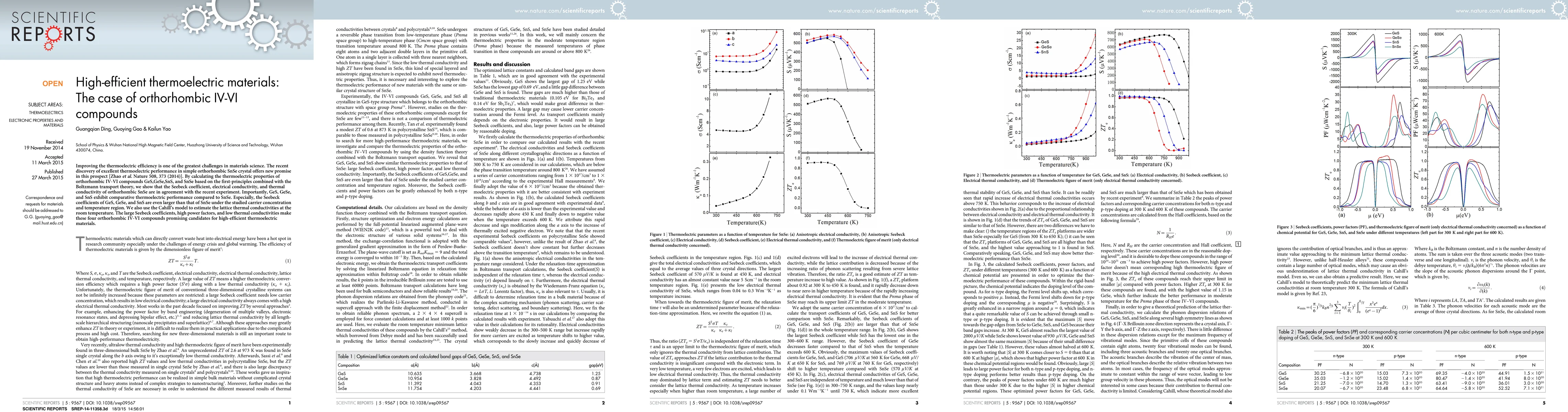 This paper investigates the thermoelectric properties of orthorhombic IV-VI compounds, finding that SnSe, GeS, GeSe, and SnS exhibit promising high-efficiency thermoelectric performance. The study confirms SnSe's experimental results and highlights GeS, GeSe, and SnS as competitive alternatives due to their large Seebeck coefficients and low thermal conductivities.