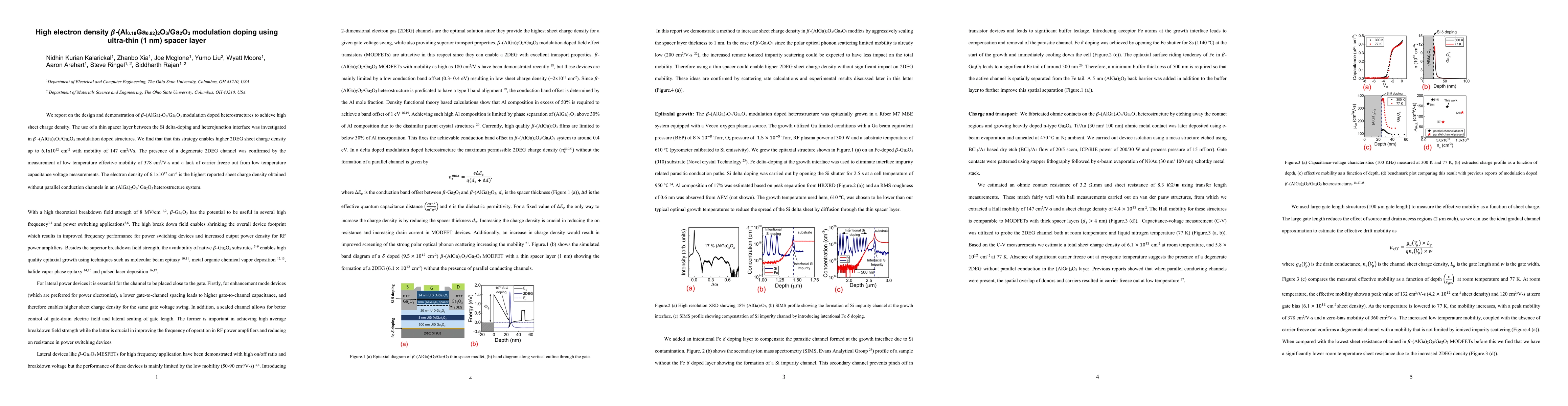 We report on the design and demonstration of ${\beta}-(Al_{0.18}Ga_{0.82})_2O_3/Ga_2O_3$ modulation doped heterostructures to achieve high sheet charge density. The use of a thin spacer layer between the Si delta-doping and heterojunction interface was investigated in ${\beta}-(Al_{0.18}Ga_{0.82})_2O_3/Ga_2O_3$ modulation doped structures. We find that that this strategy enables higher 2DEG sheet charge density up to 6.1x10^12 cm^2 with mobility of 147 cm^2/Vs. The presence of a degenerate 2DEG channel was confirmed by the measurement of low temperature effective mobility of 378 cm^2/V-s and a lack of carrier freeze out from low temperature capacitance voltage measurements. The electron density of 6.1x10^12 cm^2 is the highest reported sheet charge density obtained without parallel conduction channels in an $(Al_{0.18}Ga_{0.82})_2O_3/Ga_2O_3$ heterostructure system.