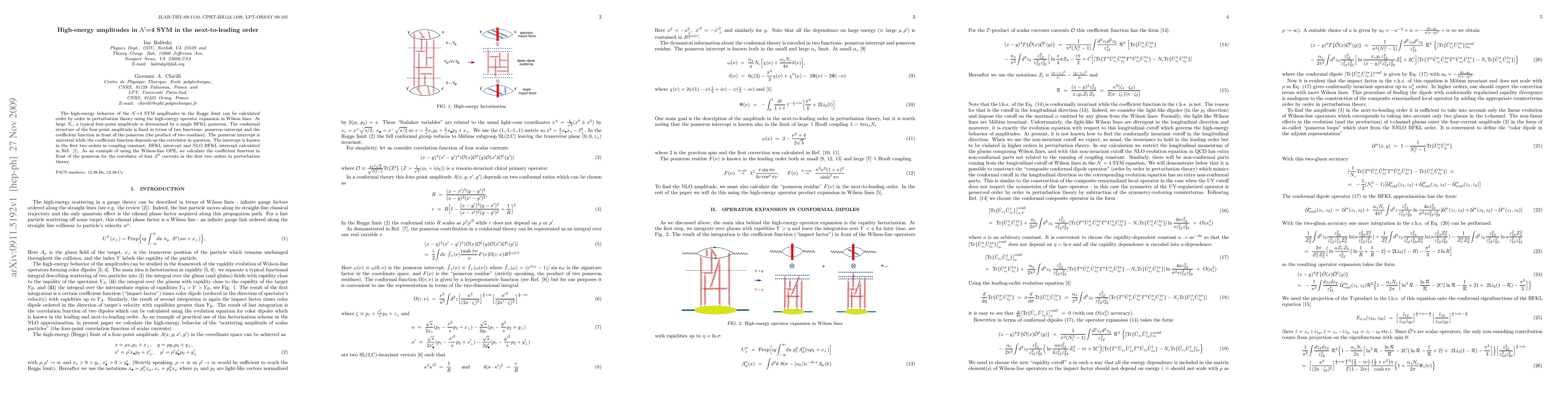 The high-energy behavior of the N=4 SYM amplitudes in the Regge limit can be calculated order by order in perturbation theory using the high-energy operator expansion in Wilson lines. At large $N_c$, a typical four-point amplitude is determined by a single BFKL pomeron. The conformal structure of the four-point amplitude is fixed in terms of two functions: pomeron intercept and the coefficient function in front of the pomeron (the product of two residues). The pomeron intercept is universal while the coefficient function depends on the correlator in question. The intercept is known in the first two orders in coupling constant: BFKL intercept and NLO BFKL intercept calculated in Ref. 1. As an example of using the Wilson-line OPE, we calculate the coefficient function in front of the pomeron for the correlator of four $Z^2$ currents in the first two orders in perturbation theory.