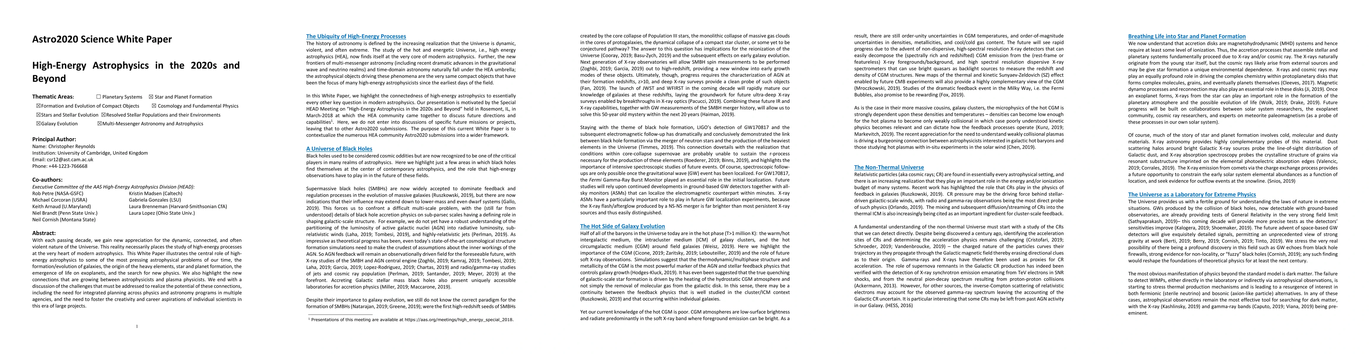 With each passing decade, we gain new appreciation for the dynamic, connected, and often violent nature of the Universe. This reality necessarily places the study of high-energy processes at the very heart of modern astrophysics. This White Paper illustrates the central role of high-energy astrophysics to some of the most pressing astrophysical problems of our time, the formation/evolution of galaxies, the origin of the heavy elements, star and planet formation, the emergence of life on exoplanets, and the search for new physics. We also highlight the new connections that are growing between astrophysicists and plasma physicists. We end with a discussion of the challenges that must be addressed to realize the potential of these connections, including the need for integrated planning across physics and astronomy programs in multiple agencies, and the need to foster the creativity and career aspirations of individual scientists in this era of large projects.