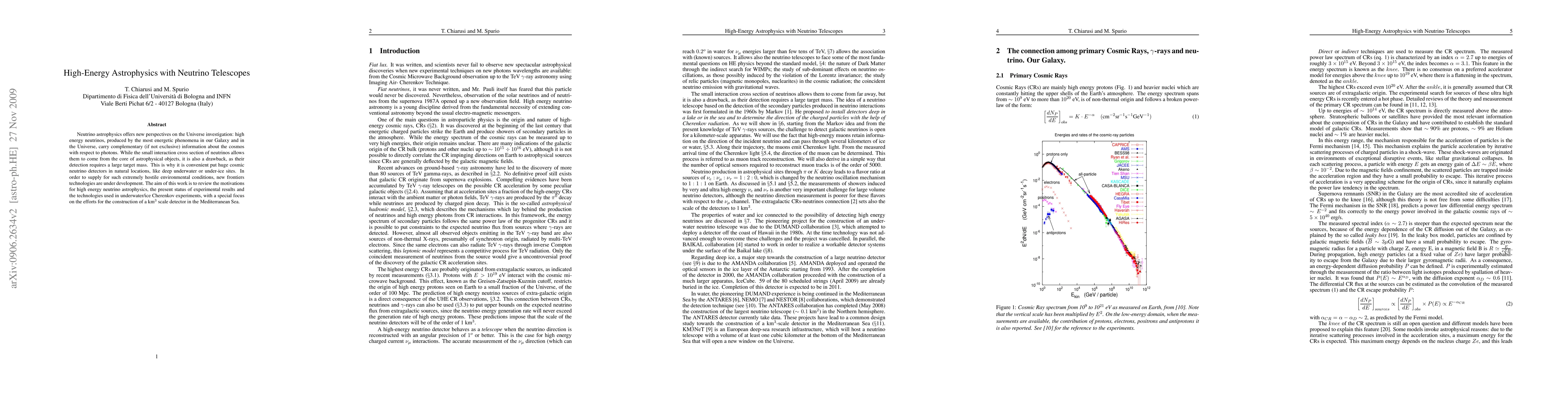 This paper reviews high-energy neutrino astrophysics, highlighting its benefits and challenges, including the development of new technologies for detecting neutrinos in extreme environments. It also focuses on a proposed km3 scale detector in the Mediterranean Sea to advance our understanding of the universe.