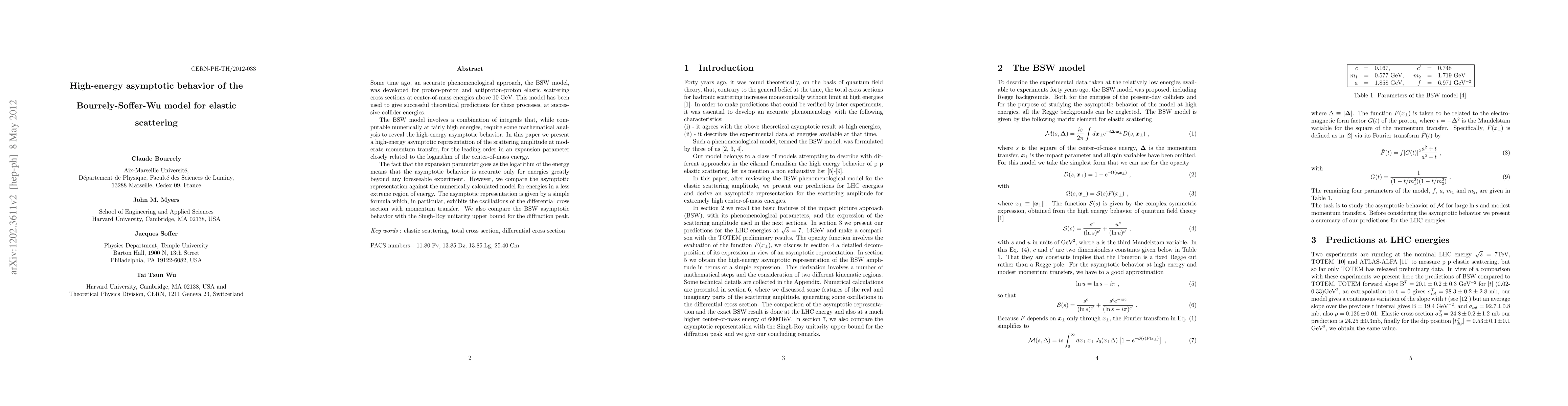 Some time ago, an accurate phenomenological approach, the BSW model, was developed for proton-proton and antiproton-proton elastic scattering cross sections at center-of-mass energies above 10 GeV. This model has been used to give successful theoretical predictions for these processes, at successive collider energies. The BSW model involves a combination of integrals that, while computable numerically at fairly high energies, require some mathematical analysis to reveal the high-energy asymptotic behavior. In this paper we present a high-energy asymptotic representation of the scattering amplitude at moderate momentum transfer, for the leading order in an expansion parameter closely related to the logarithm of the center-of-mass energy. The fact that the expansion parameter goes as the logarithm of the energy means that the asymptotic behavior is accurate only for energies greatly beyond any foreseeable experiment. However, we compare the asymptotic representation against the numerically calculated model for energies in a less extreme region of energy. The asymptotic representation is given by a simple formula which, in particular, exhibits the oscillations of the differential cross section with momentum transfer. We also compare the BSW asymptotic behavior with the Singh-Roy unitarity upper bound for the diffraction peak.