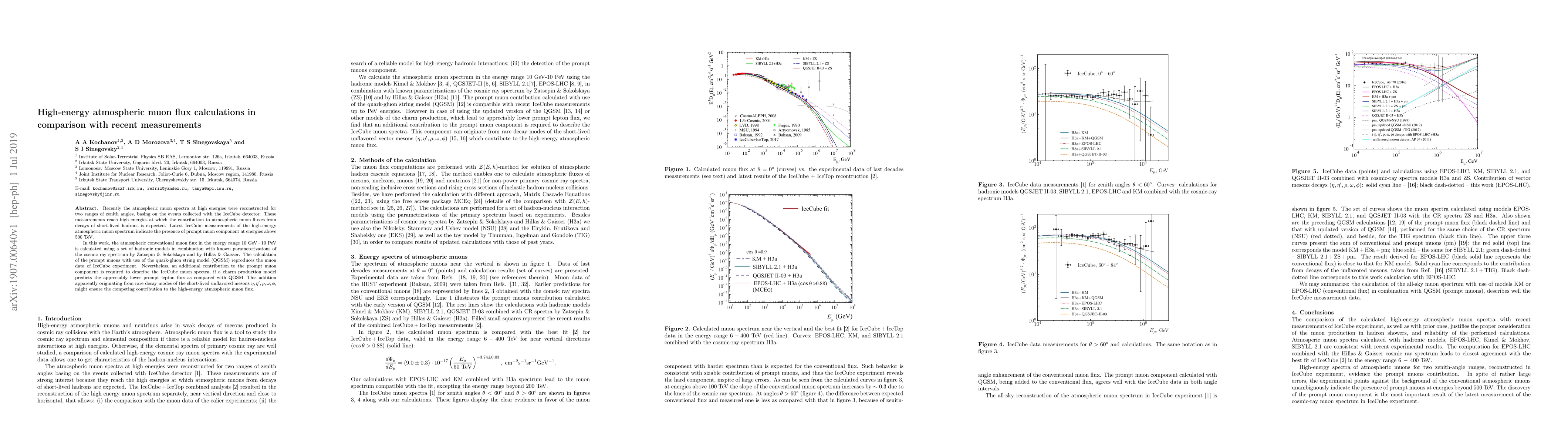 This paper calculates high-energy atmospheric muon fluxes using various hadronic models and compares them with recent IceCube measurements. The quark-gluon string model (QGSM) aligns well with the data, but additional contributions from rare decay modes of short-lived mesons are needed to fully explain the observed prompt muon component above 500 TeV.
