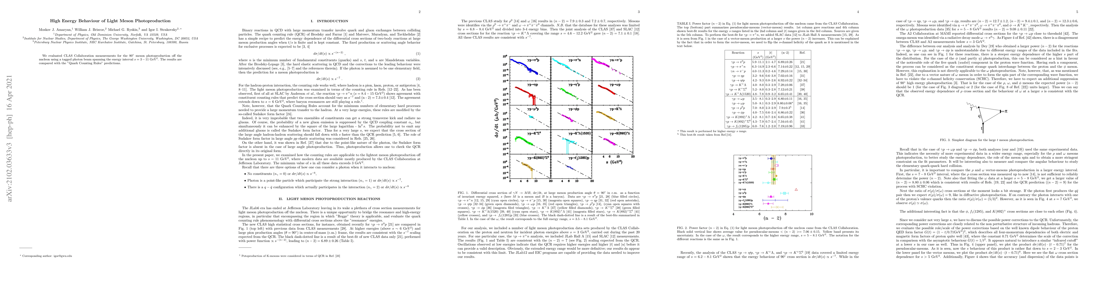 We evaluated recent CLAS Collaboration measurements for the $90^\circ$ meson photoproduction off the nucleon using a tagged photon beam spanning the energy interval $s = 3 - 11$ GeV$^2$. The results are compared with the "Quark Counting Rules" predictions.