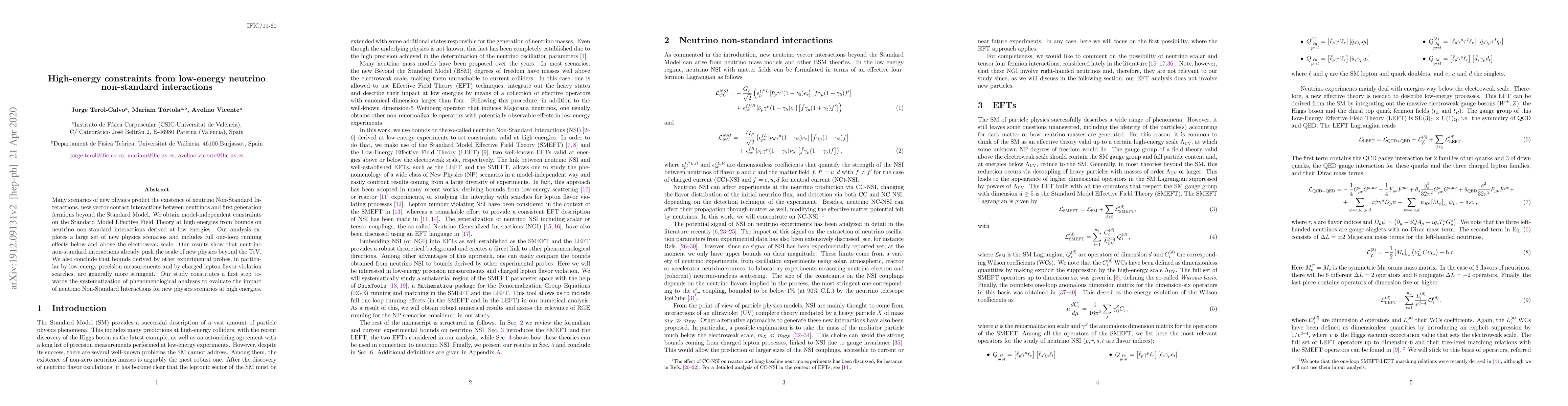 This paper derives model-independent constraints on high-energy new physics from low-energy neutrino non-standard interactions, showing that such interactions push the scale of new physics beyond the TeV. It finds that low-energy precision measurements and charged lepton flavor violation searches generally provide more stringent bounds.