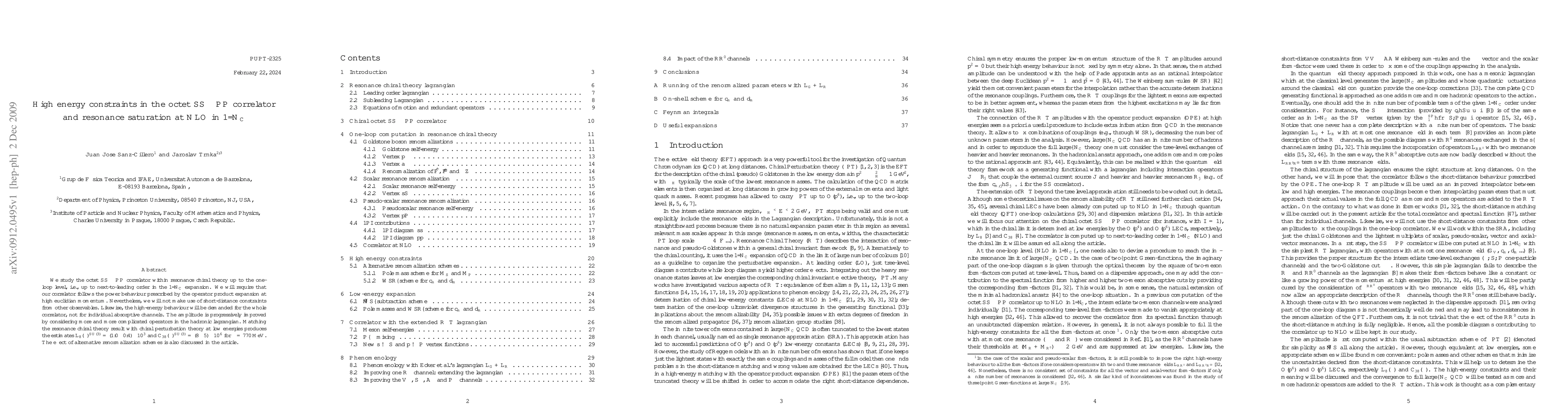 We study the octet SS-PP correlator within resonance chiral theory up to the one-loop level, i.e., up to next-to-leading order in the 1/Nc expansion. We will require that our correlator follows the power behaviour prescribed by the operator product expansion at high euclidian momentum. Nevertheless, we will not make use of short-distance constraints from other observables. Likewise, the high-energy behaviour will be demanded for the whole correlator, not for individual absorptive channels. The amplitude is progressively improved by considering more and more complicated operators in the hadronic lagrangian. Matching the resonance chiral theory result with chiral perturbation theory at low energies produces the estimates L_8(mu)^{SU(3)} = (1.0+-0.4)10^-3 and C_{38}(mu)^{SU(3)} = (8+-5) 10^-6 for mu=770 MeV. The effect of alternative renormalization schemes is also discussed in the article.