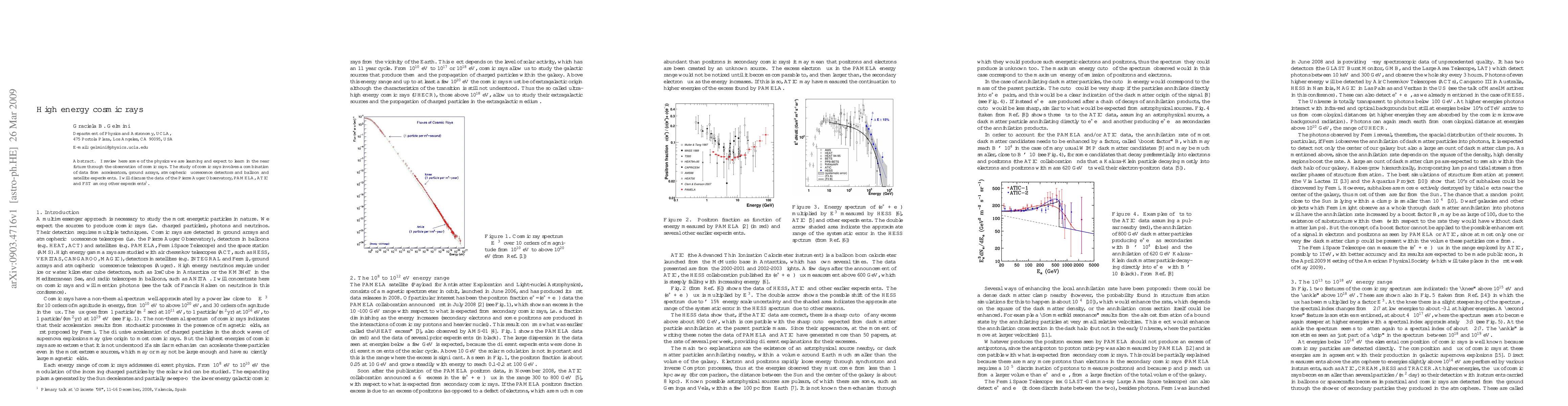 I review here some of the physics we are learning and expect to learn in the near future through the observation of cosmic rays. The study of cosmic rays involves a combination of data from accelerators, ground arrays, atmospheric fluorescence detectors and balloon and satellite experiments. I will discuss the data of the Pierre Auger Observatory, PAMELA, ATIC and FST among other experiments.