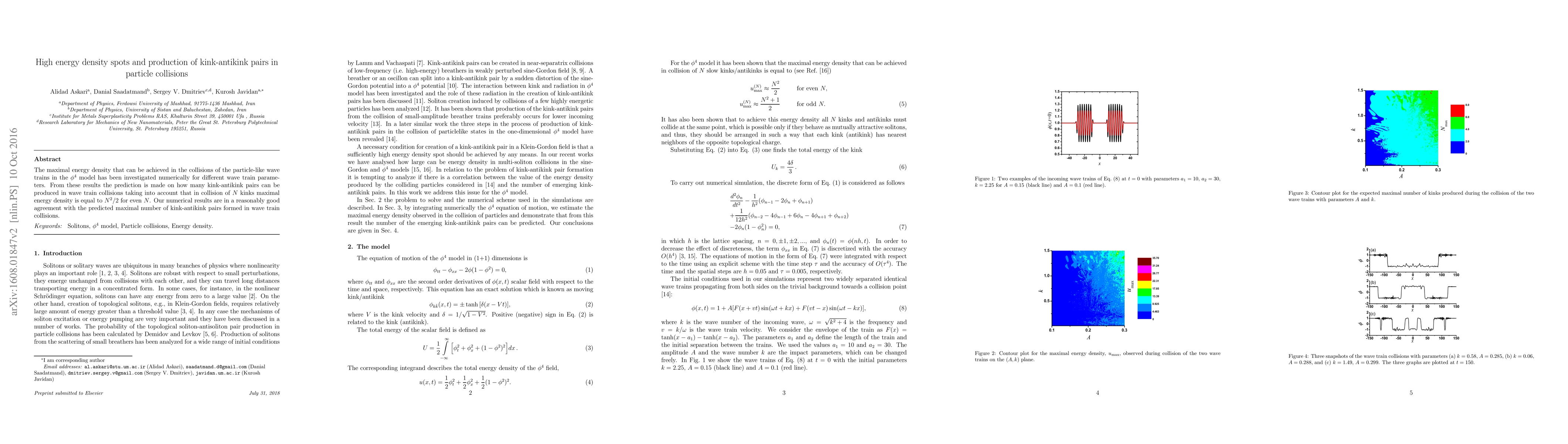 This research numerically investigates the maximal energy density in $\phi^4$ model collisions of particle-like wave trains, predicting the production of kink-antikink pairs. The study finds good agreement between the predicted maximal number of pairs and the numerically derived results.