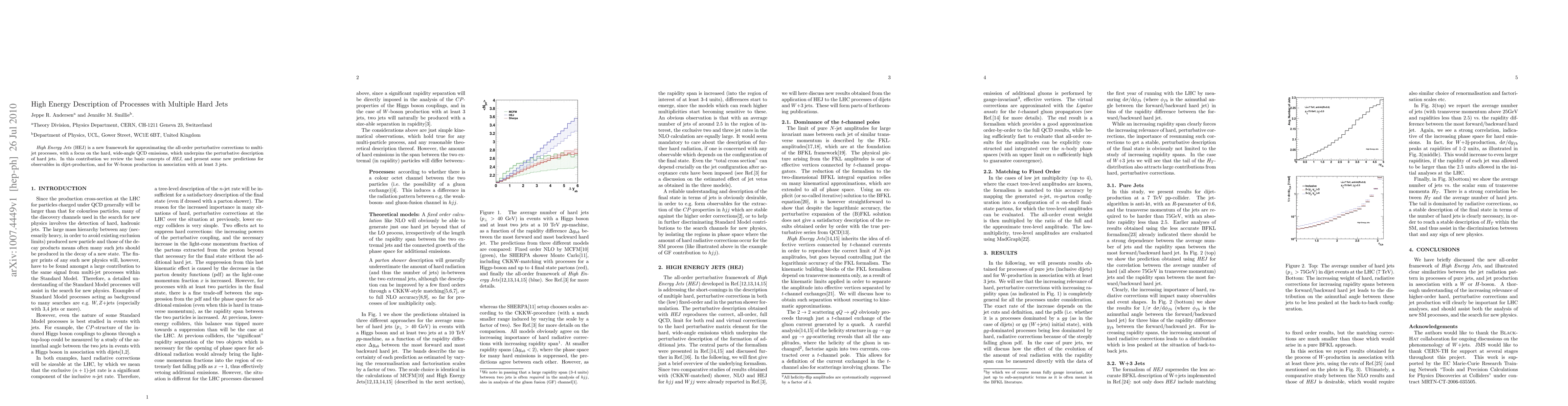 High Energy Jets (HEJ) is a new framework for approximating the all-order perturbative corrections to multi-jet processes, with a focus on the hard, wide-angle QCD emissions, which underpins the perturbative description of hard jets. In this contribution we review the basic concepts of HEJ, and present some new predictions for observables in dijet-production, and for W-boson production in association with at least 3 jets.