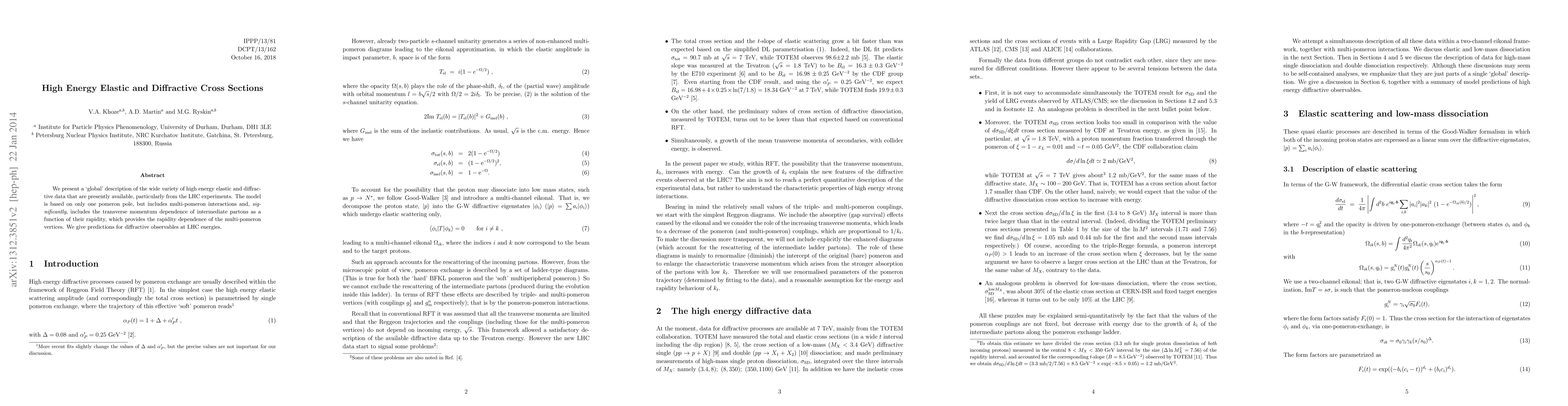 We present a `global' description of the wide variety of high energy elastic and diffractive data that are presently available, particularly from the LHC experiments. The model is based on only one pomeron pole, but includes multi-pomeron interactions and, significantly, includes the transverse momentum dependence of intermediate partons as a function of their rapidity, which provides the rapidity dependence of the multi-pomeron vertices. We give predictions for diffractive observables at LHC energies.