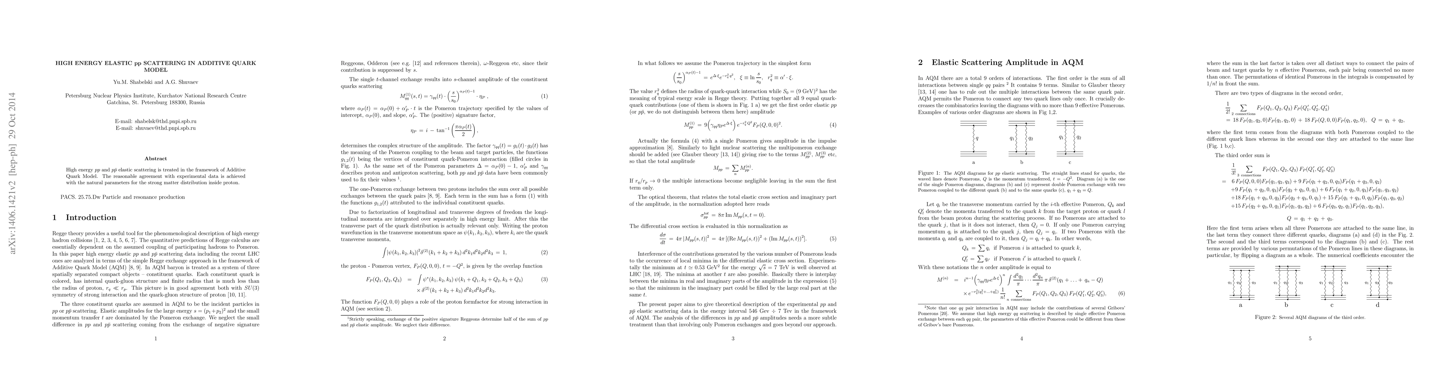 Summary: This paper investigates high energy elastic $pp$ and $p\bar p$ scattering using the Additive Quark Model, achieving good agreement with experimental data by employing natural parameters for the strong matter distribution within protons.
