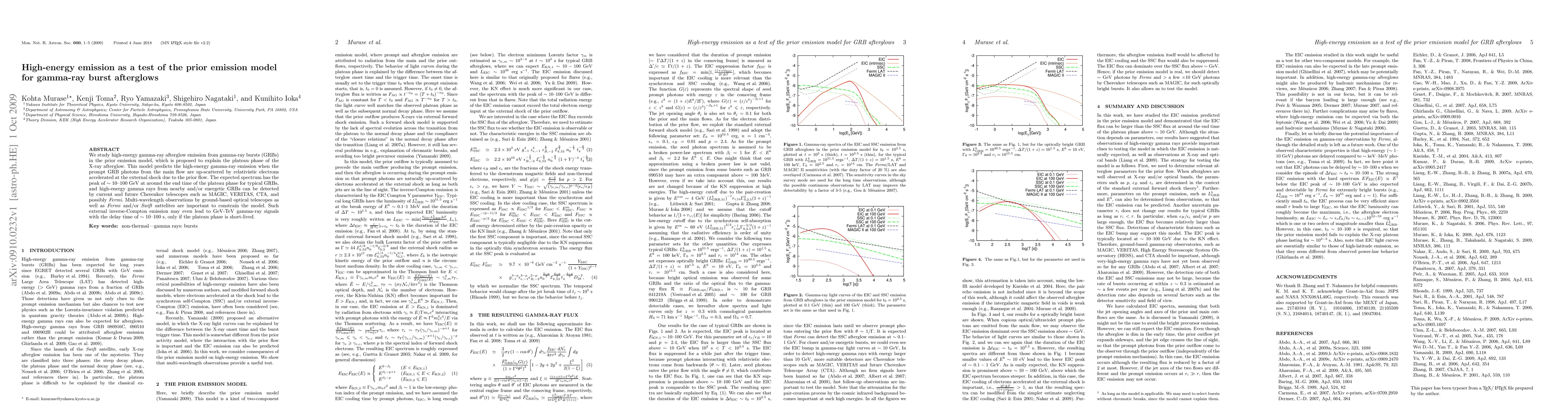 This paper investigates high-energy gamma-ray afterglow emissions in gamma-ray bursts (GRBs) using the prior emission model, predicting GeV-TeV gamma rays from up-scattered prompt GRB photons. Multi-wavelength observations from telescopes like MAGIC and Fermi are crucial for validating this model.