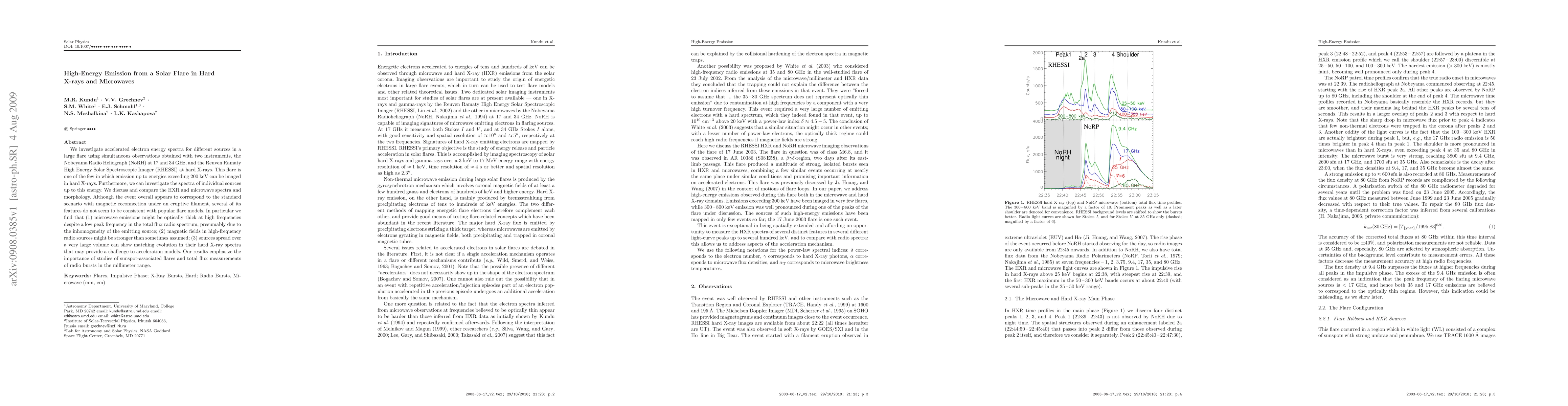This paper investigates the high-energy emission from a solar flare using observations from NoRH and RHESSI, revealing complexities in electron energy spectra and flare models. It highlights discrepancies in microwave emission and magnetic field strength, challenging existing acceleration models.