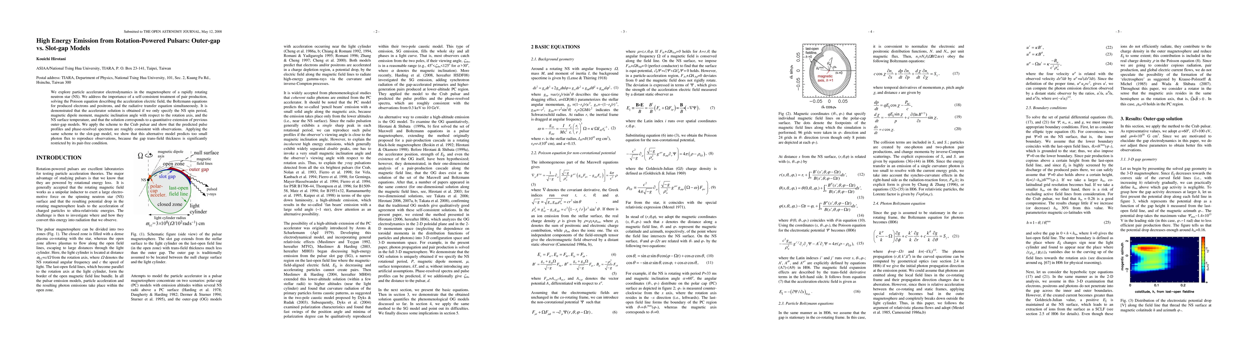 This paper investigates the electrodynamics of particle acceleration in the magnetospheres of rapidly rotating neutron stars, comparing the outer-gap and slot-gap models. It finds that the outer-gap model, extended with self-consistent pair production, aligns well with observed pulse profiles and spectra of pulsars like the Crab, while the slot-gap model fails to reproduce the observed photon flux.