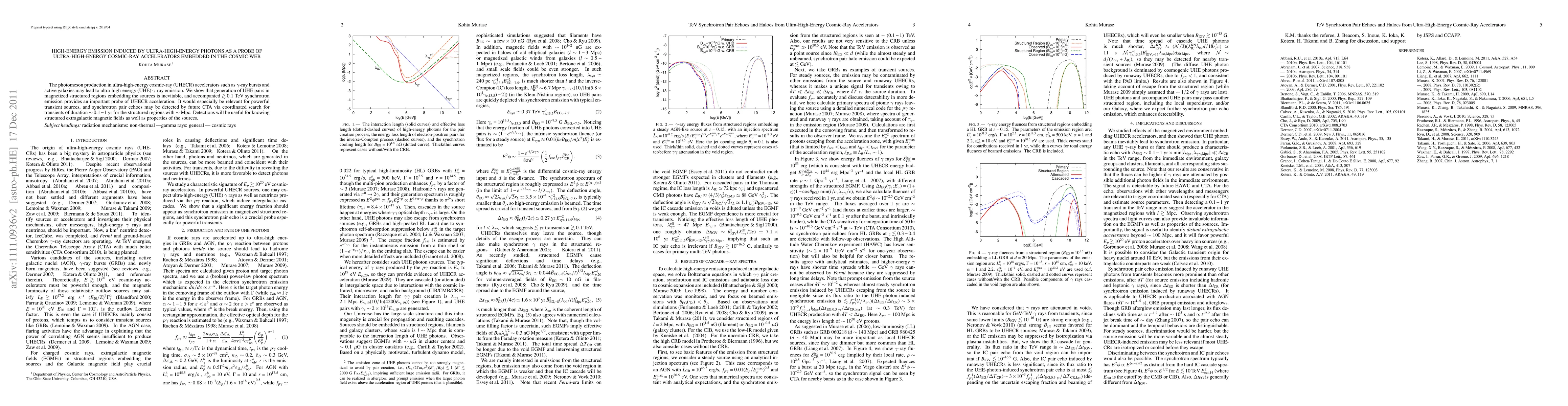 The photomeson production in ultra-high-energy cosmic-ray (UHECR) accelerators such as gamma-ray bursts and active galaxies may lead to ultra-high-energy (UHE) gamma-ray emission. We show that generation of UHE pairs in magnetized structured regions embedding the sources is inevitable, and accompanied >0.1 TeV synchrotron emission provides an important probe of UHECR acceleration. It would especially be relevant for powerful transient sources, and synchrotron pair echoes may be detected by future CTA via coordinated search for transients of duration ~0.1-1 yr for the structured regions with ~Mpc. Detections will be useful for knowing structured extragalactic magnetic fields as well as properties of the sources.