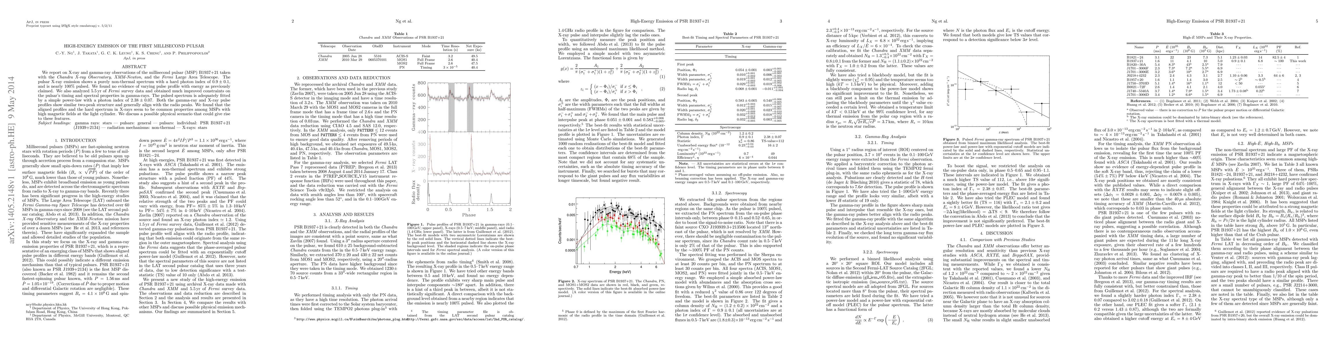 We report on X-ray and gamma-ray observations of the millisecond pulsar B1937+21 taken with the Chandra X-ray Observatory, XMM-Newton, and the Fermi Large Area Telescope. The pulsar X-ray emission shows a purely non-thermal spectrum with a hard photon index of 0.9+/-0.1, and is nearly 100% pulsed. We found no evidence of varying pulse profile with energy as previously claimed. We also analyzed 5.5 yr of Fermi survey data and obtained much improved constraints on the pulsar's timing and spectral properties in gamma-rays. The pulsed spectrum is adequately fitted by a simple power-law with a photon index of 2.38+/-0.07. Both the gamma-ray and X-ray pulse profiles show similar two-peak structure and generally align with the radio peaks. We found that the aligned profiles and the hard spectrum in X-rays seem to be common properties among millisecond pulsars with high magnetic fields at the light cylinder. We discuss a possible physical scenario that could give rise to these features.
