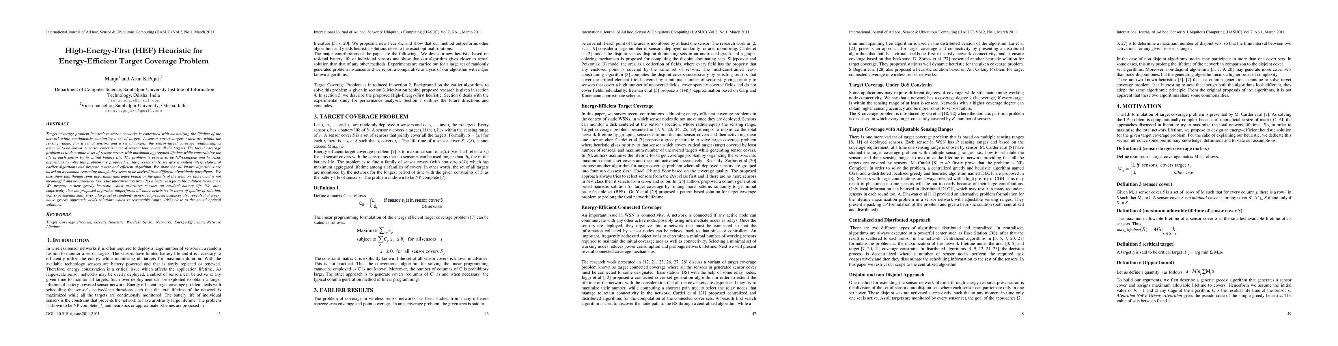 A new greedy heuristic prioritizes sensors based on residual battery life to optimize target coverage in wireless sensor networks, outperforming existing heuristics with solutions approximately 10% close to optimal solutions.