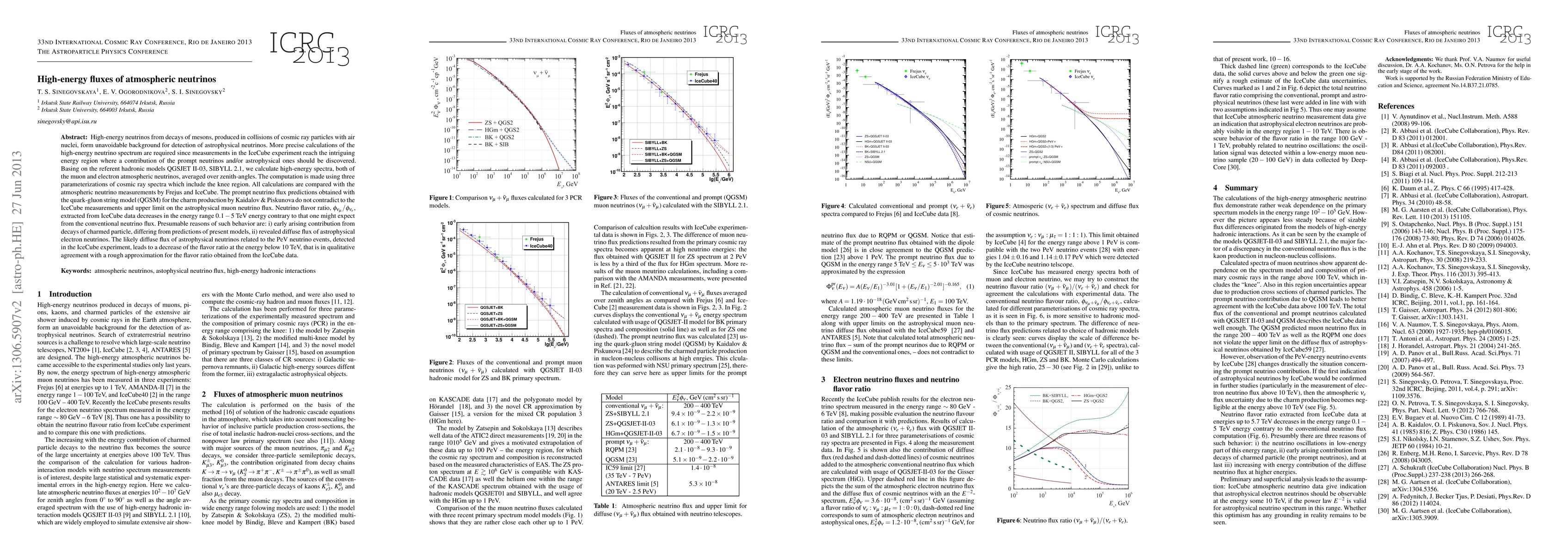This paper calculates high-energy atmospheric neutrino spectra using various hadronic models and cosmic ray parameterizations, comparing results to IceCube and Frejus measurements. It finds that the observed decrease in the muon-to-electron neutrino ratio at high energies may be due to contributions from charmed particle decays and a diffuse astrophysical neutrino flux.
