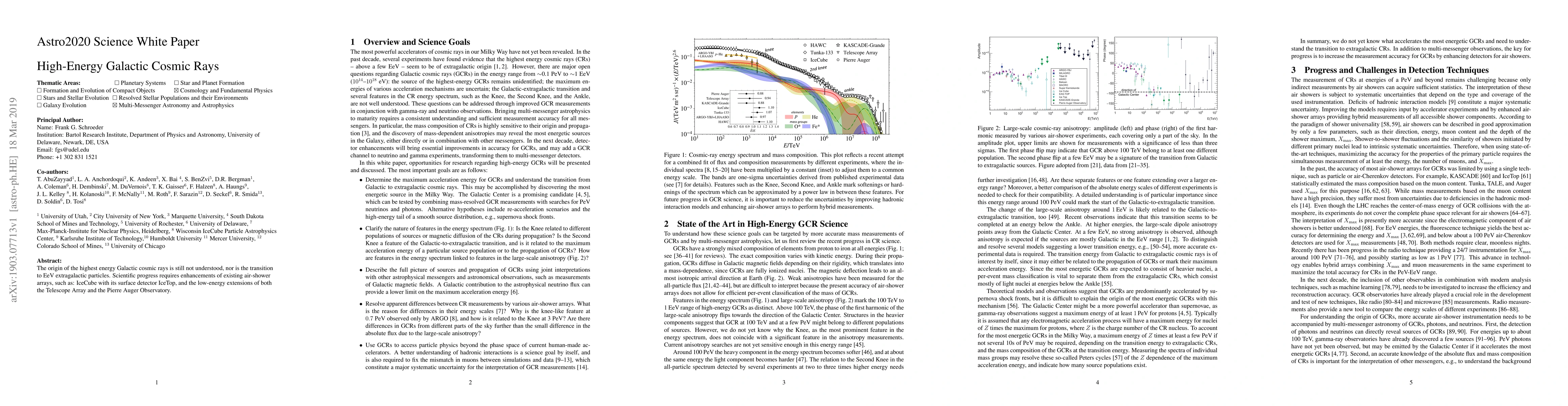 Scientists seek to understand the origin of the highest energy Galactic cosmic rays and transition to EeV extragalactic particles through upgrades to air-shower arrays like IceCube and Telescope Array.