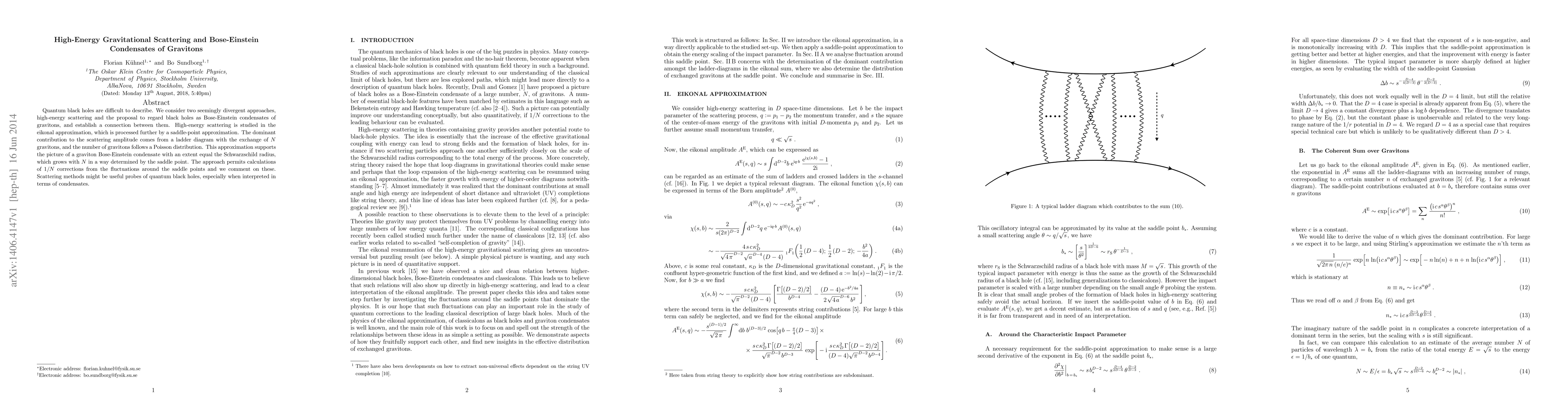 Quantum black holes are difficult to describe. We consider two seemingly divergent approaches, high-energy scattering and the proposal to regard black holes as Bose-Einstein condensates of gravitons, and establish a connection between them. High-energy scattering is studied in the eikonal approximation, which is processed further by a saddle-point approximation. The dominant contribution to the scattering amplitude comes from a ladder diagram with the exchange of N gravitons, and the number of gravitons follows a Poisson distribution. This approximation supports the picture of a graviton Bose-Einstein condensate with an extent equal the Schwarzschild radius, which grows with N in a way determined by the saddle point. The approach permits calculations of 1 / N corrections from the fluctuations around the saddle points and we comment on these. Scattering methods might be useful probes of quantum black holes, especially when interpreted in terms of condensates.