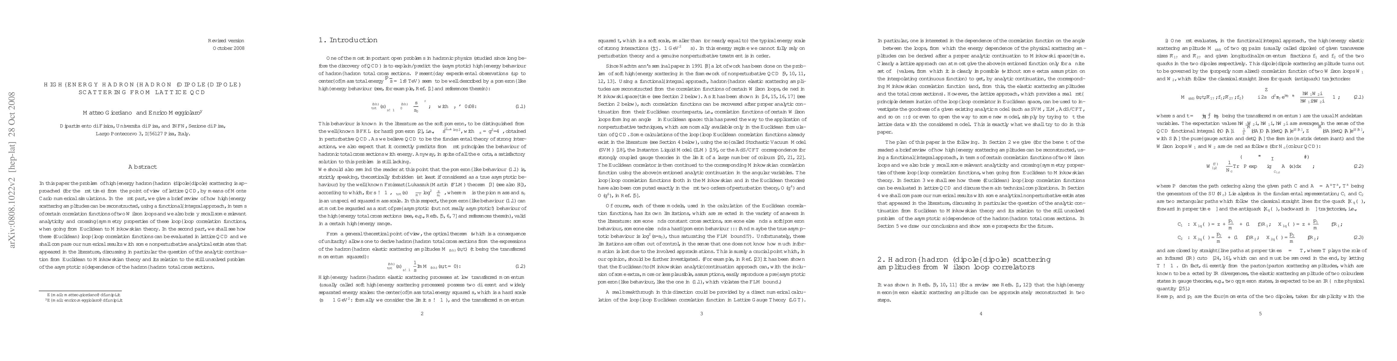 This paper investigates high-energy hadron-hadron scattering via lattice QCD simulations, reconstructing scattering amplitudes using Wilson loops and comparing numerical results with nonperturbative analytical estimates, focusing on the analytic continuation from Euclidean to Minkowskian theory.