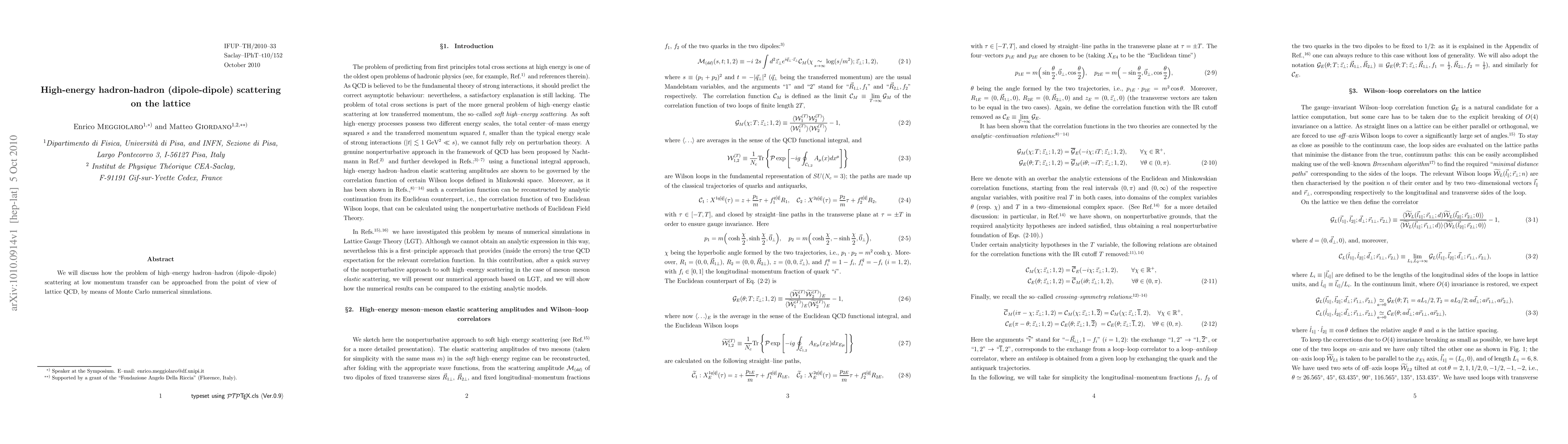 This paper explores high-energy hadron-hadron scattering at low momentum transfer using lattice QCD and Monte Carlo simulations, aiming to provide insights into the underlying dipole-dipole interactions. The study leverages numerical methods to analyze the scattering processes within the framework of lattice QCD.
