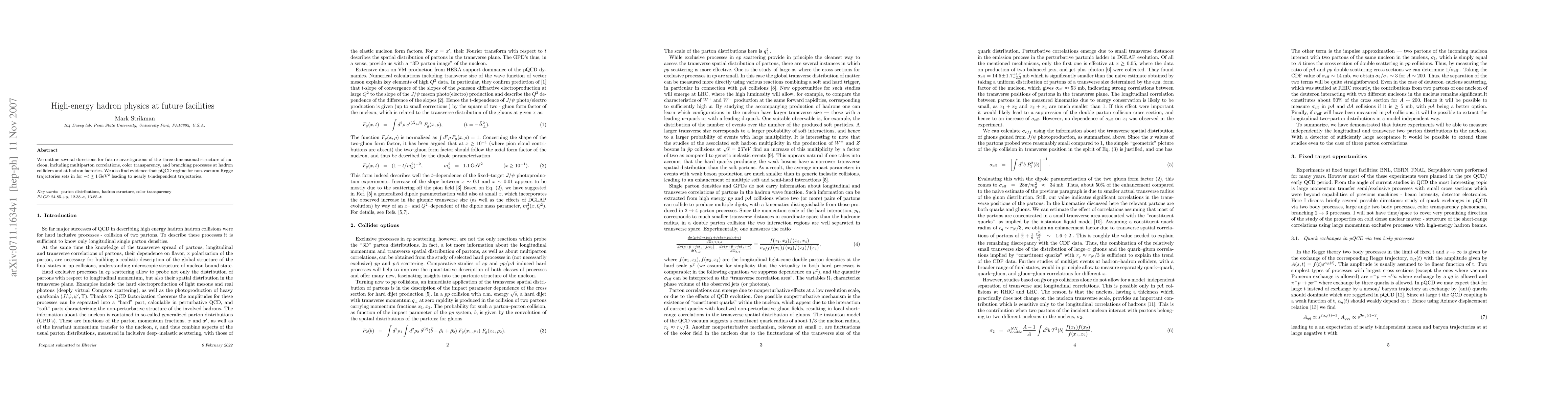 This paper explores future research avenues in high-energy hadron physics, focusing on the three-dimensional structure of nucleons through multiparton correlations and color transparency. It also presents evidence for the pQCD regime in non-vacuum Regge trajectories at high momentum transfers.
