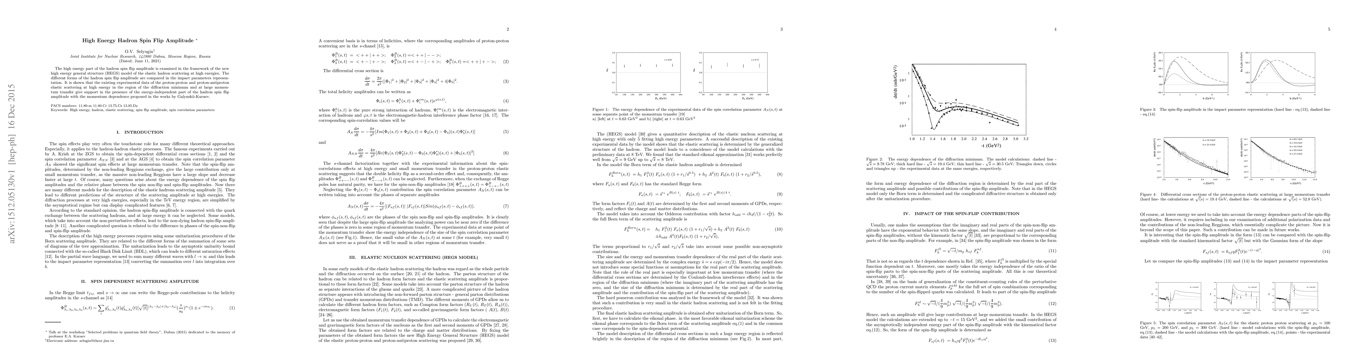 Researchers investigated the high-energy spin flip amplitude in hadron scattering using the HEGS model, finding support for an energy-independent part of the amplitude with a proposed momentum dependence that aligns with existing experimental data from proton-proton and proton-antiproton scattering.