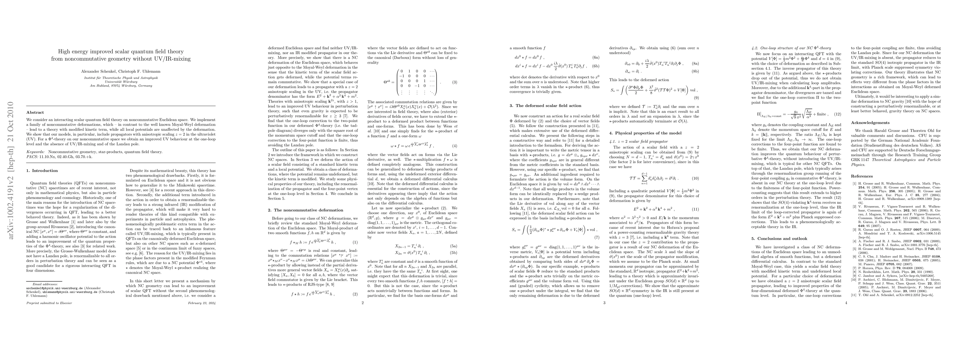 We consider an interacting scalar quantum field theory on noncommutative Euclidean space. We implement a family of noncommutative deformations, which -- in contrast to the well known Moyal-Weyl deformation -- lead to a theory with modified kinetic term, while all local potentials are unaffected by the deformation. We show that our models, in particular, include propagators with anisotropic scaling z=2 in the ultraviolet (UV). For a \Phi^4-theory on our noncommutative space we obtain an improved UV behaviour at the one-loop level and the absence of UV/IR-mixing and of the Landau pole.