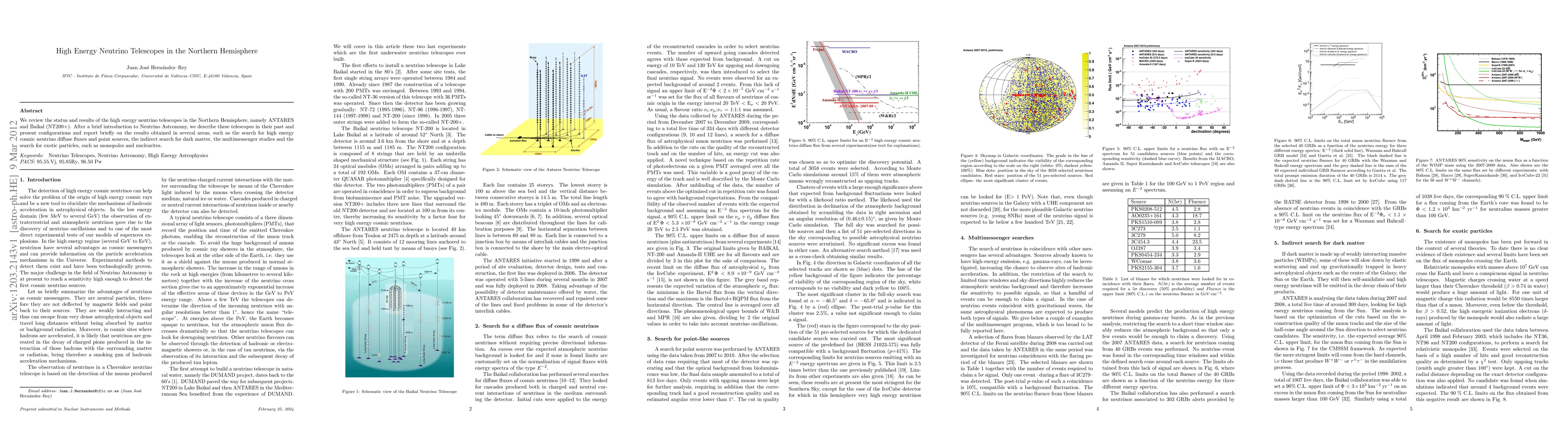 Summary: This paper reviews the current status and findings of ANTARES and Baikal (NT200+), two high energy neutrino telescopes in the Northern Hemisphere, focusing on their contributions to the field of neutrino astronomy.