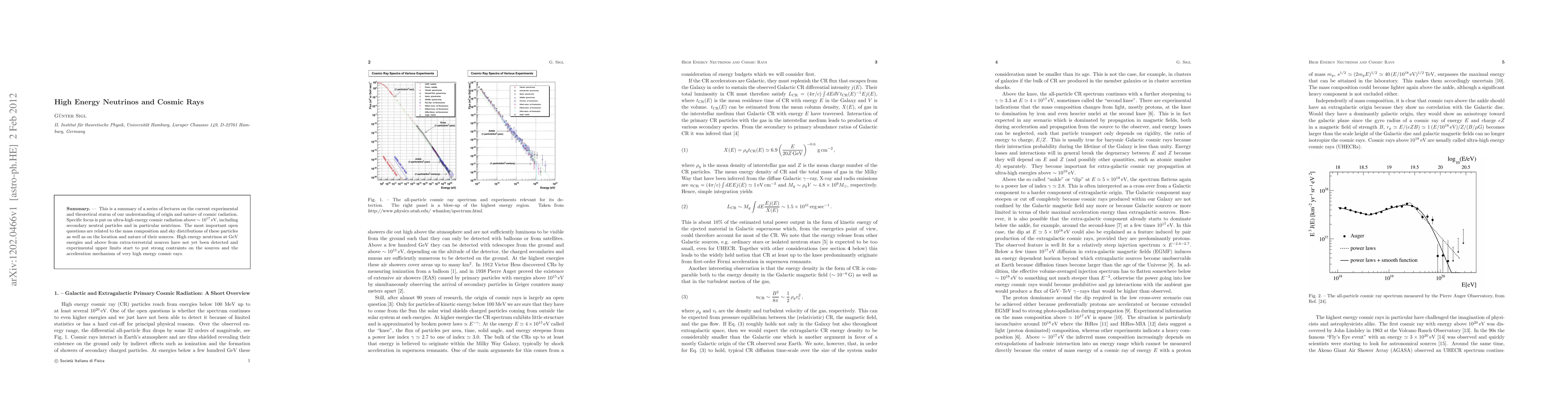 This is a summary of a series of lectures on the current experimental and theoretical status of our understanding of origin and nature of cosmic radiation. Specific focus is put on ultra-high energy cosmic radiation above ~10^17 eV, including secondary neutral particles and in particular neutrinos. The most important open questions are related to the mass composition and sky distributions of these particles as well as on the location and nature of their sources. High energy neutrinos at GeV energies and above from extra-terrestrial sources have not yet been detected and experimental upper limits start to put strong contraints on the sources and the acceleration mechanism of very high energy cosmic rays.