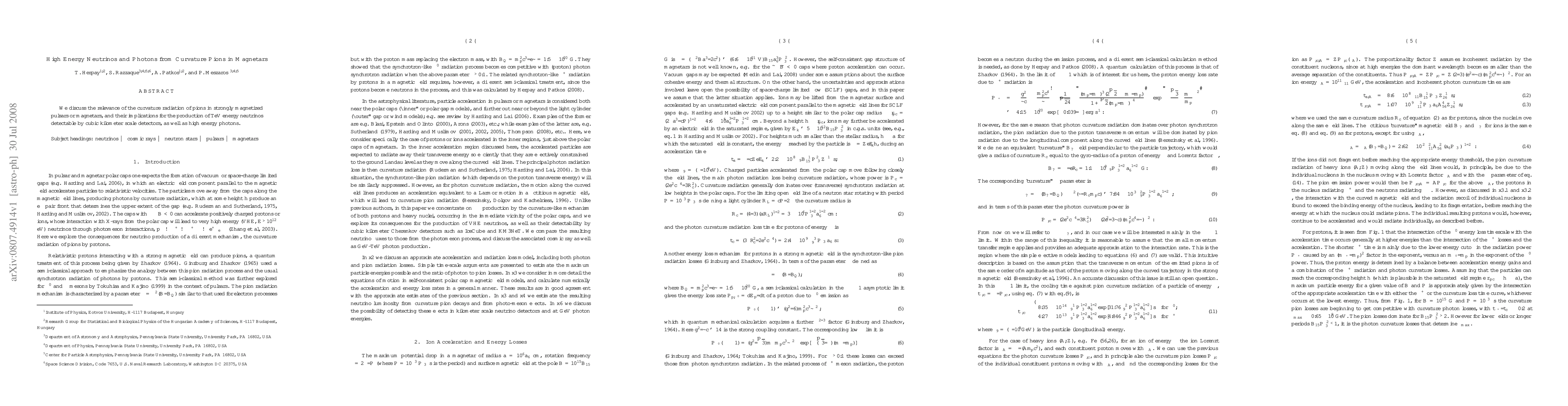 We discuss the relevance of the curvature radiation of pions in strongly magnetized pulsars or magnetars, and their implications for the production of TeV energy neutrinos detectable by cubic kilometer scale detectors, as well as high energy photons.