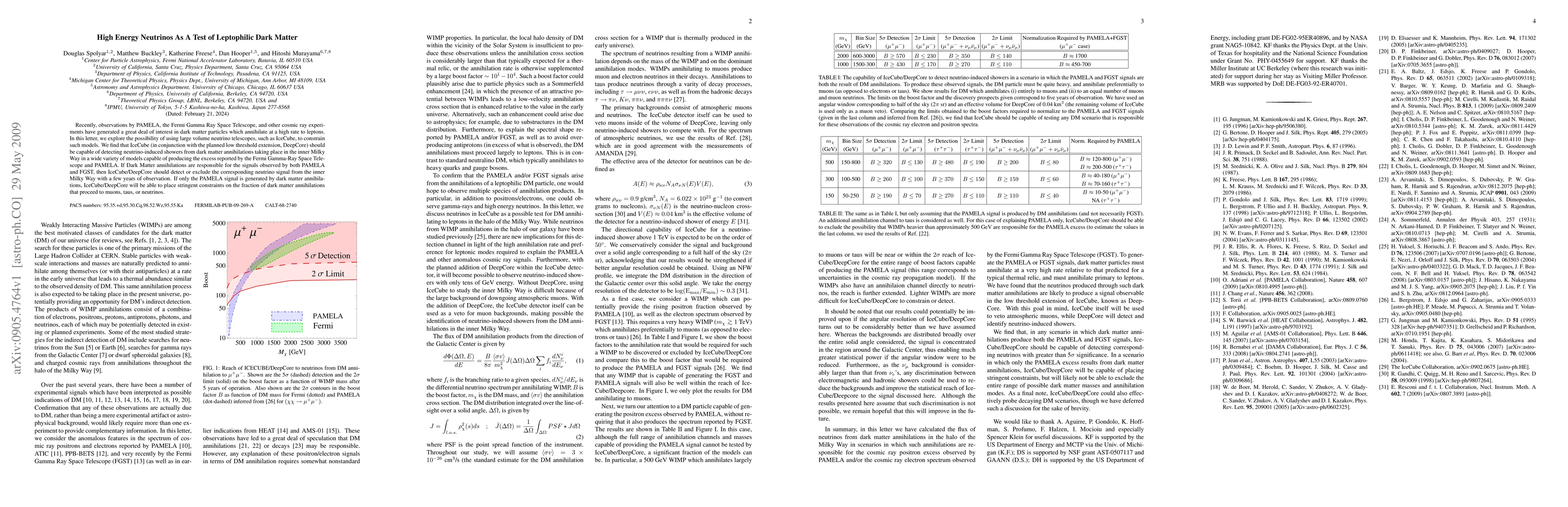 Recently, observations by PAMELA, the Fermi Gamma Ray Space Telescope, and other cosmic ray experiments have generated a great deal of interest in dark matter (DM) particles which annihilate at a high rate to leptons. In this letter, we explore the possibility of using large volume neutrino telescopes, such as IceCube, to constrain such models; specifically we consider signals due to DM annihilation in the inner Milky Way. We find that, if Dark Matter annihilations are responsible for the signals observed by PAMELA and FGST, then IceCube (in conjunction with the planned low threshold extension, DeepCore) should detect or exclude the corresponding neutrino signal from the inner Milky Way with a few years of observation.