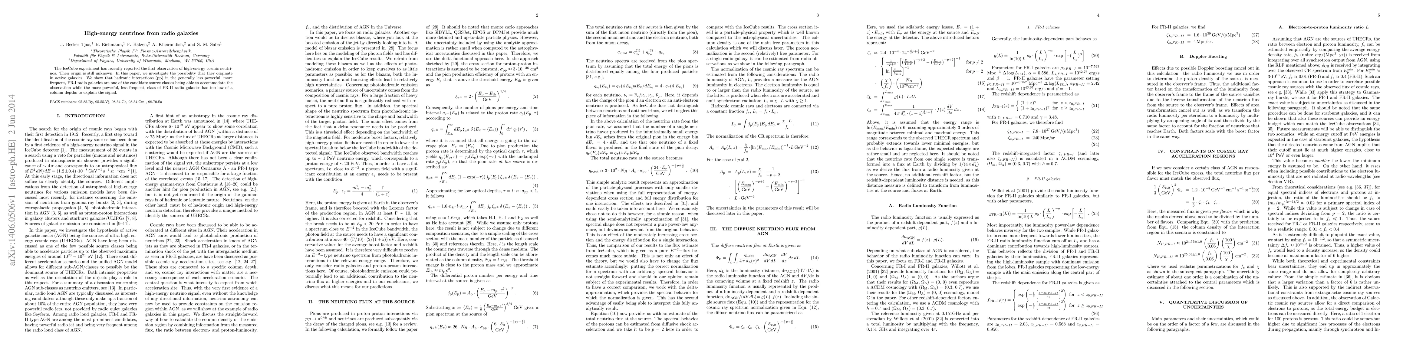 The IceCube experiment has recently reported the first observation of high-energy cosmic neutrinos. Their origin is still unknown. In this paper, we investigate the possibility that they originate in active galaxies. We show that hadronic interactions (pp) in the generally less powerful, more frequent, FR-I radio galaxies are one of the candidate source classes being able to accommodate the observation while the more powerful, less frequent, class of FR-II radio galaxies has too low of a column depths to explain the signal.