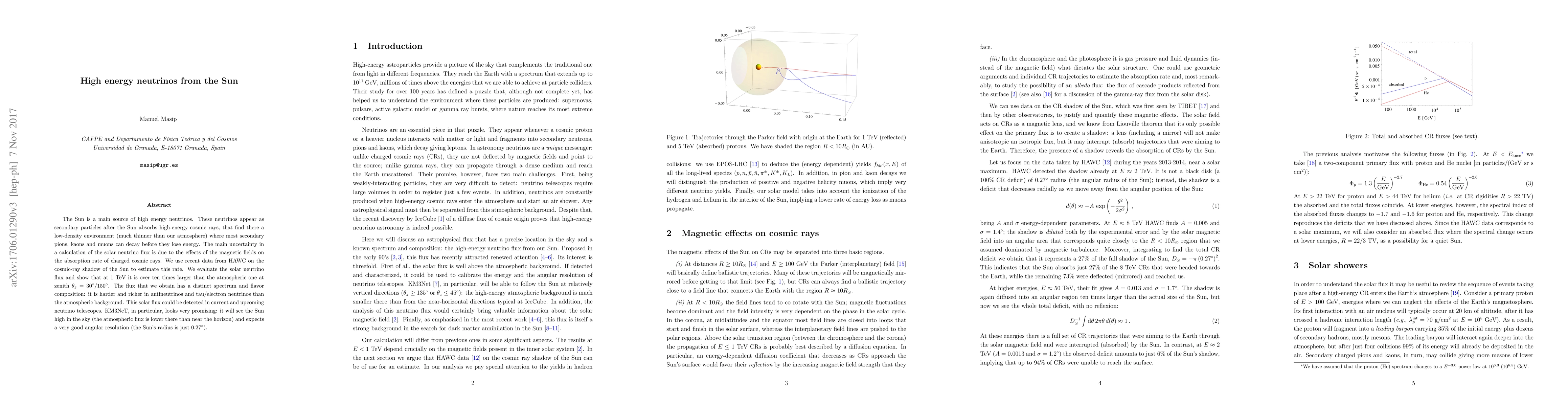 The paper presents a detailed analysis of high-energy neutrino production in the Sun through cosmic ray interactions, incorporating hadronic cross-section parametrization, secondary hadron yields, and neutrino transport equations.