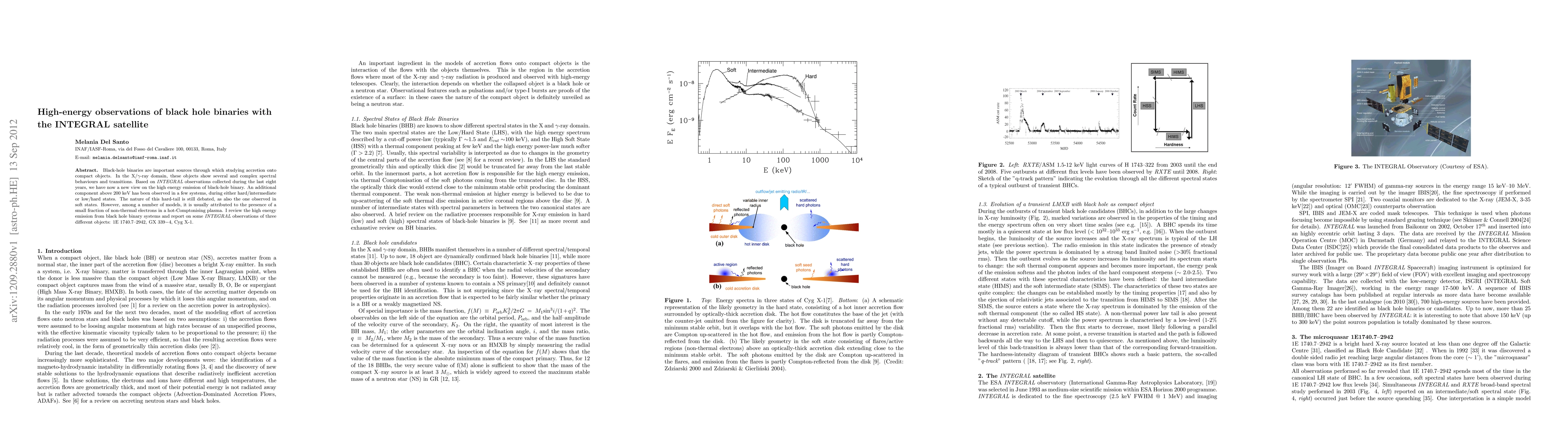 This paper reviews high-energy emissions from black hole binaries observed by the INTEGRAL satellite, highlighting complex spectral behaviors and transitions. An additional hard-tail component above 200 keV was detected in some systems, likely due to non-thermal electrons in a hot-Comptonising plasma, with particular observations reported for 1E 1740.7-2942, GX 339-4, and Cyg X-1.