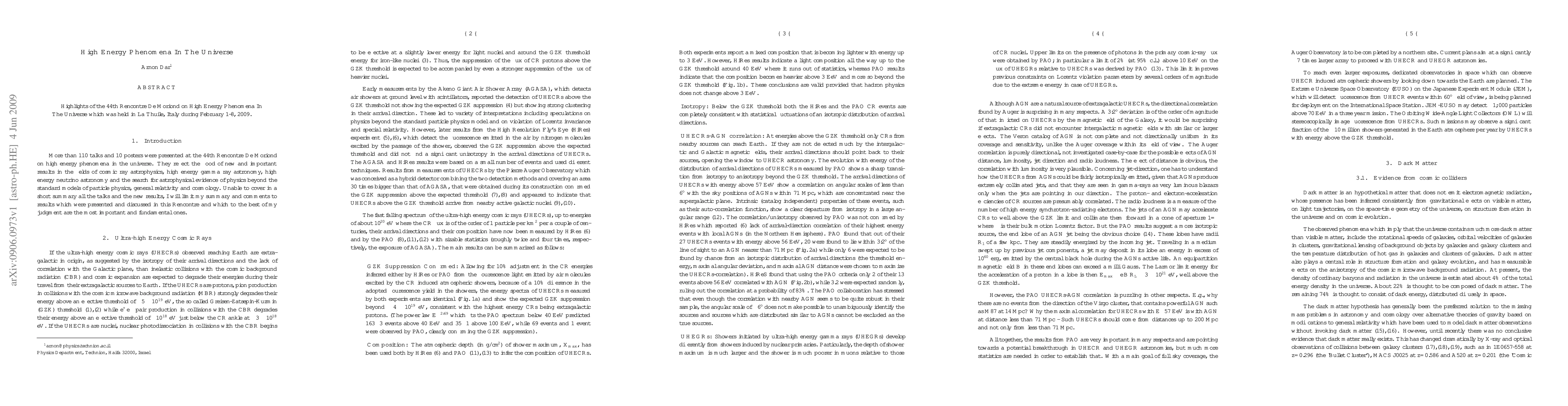 Highlights of the 44th Rencontre De Moriond on High Energy Phenomena In The Universe which was held in La Thuile, Italy during February 1-8, 2009.